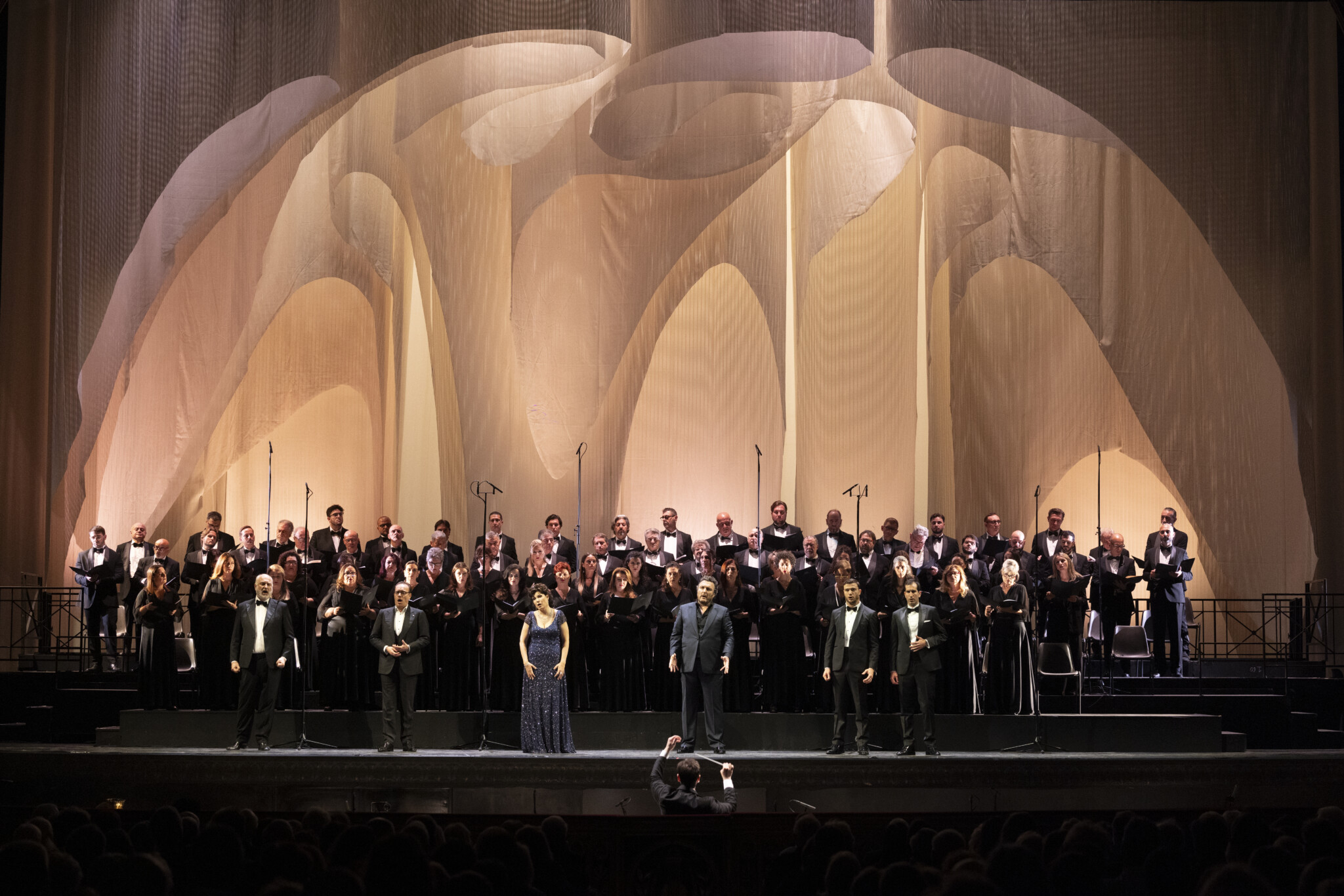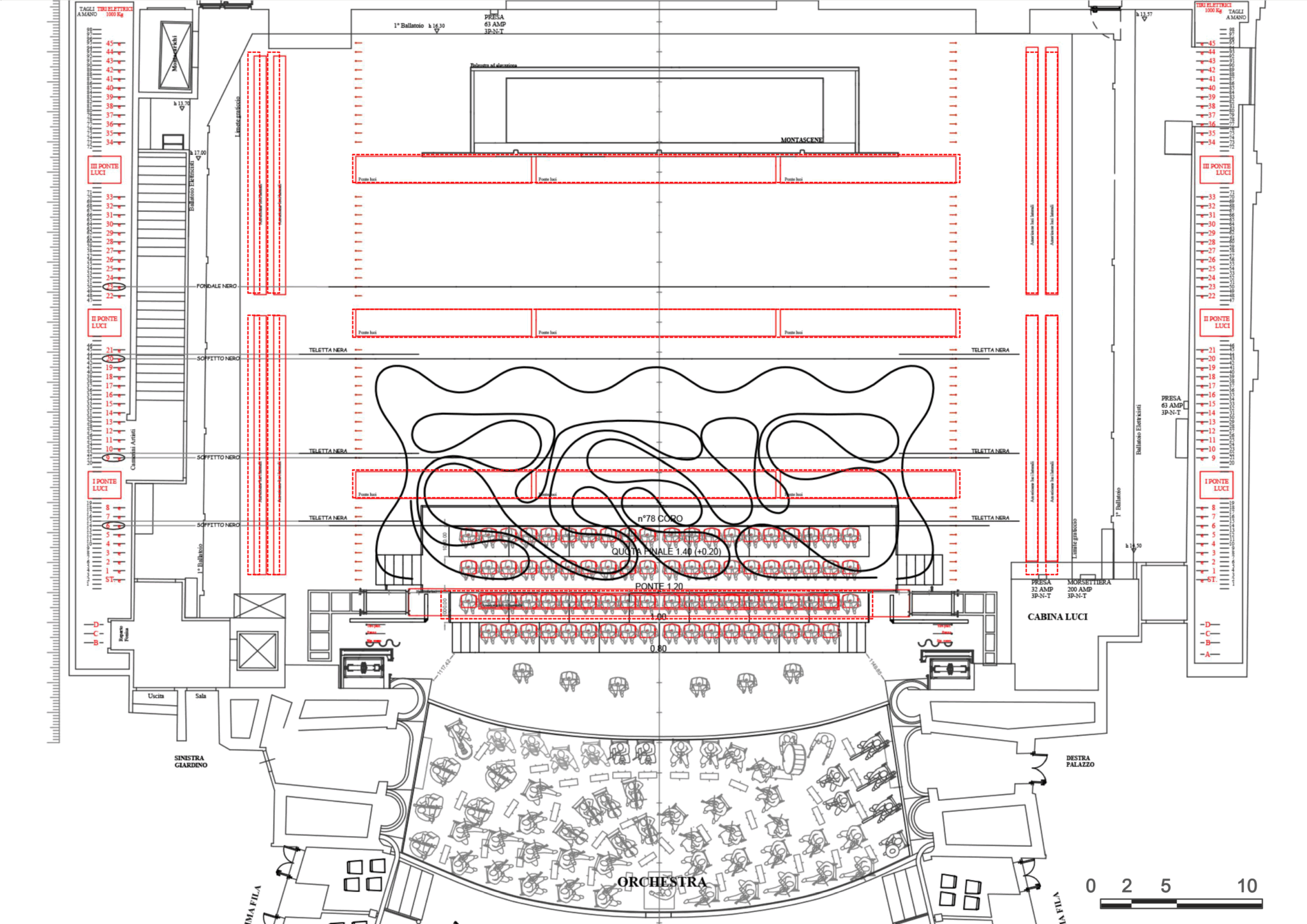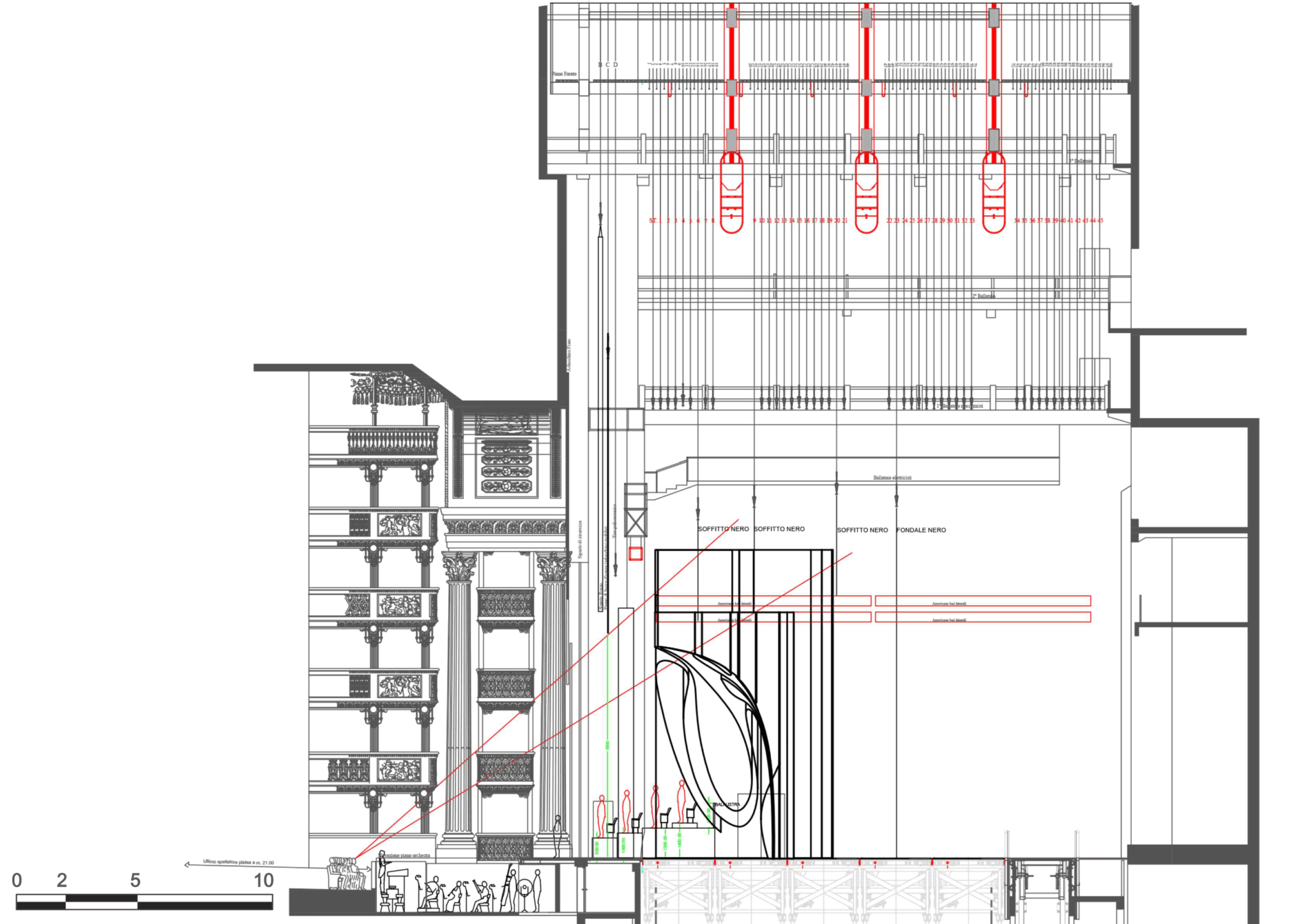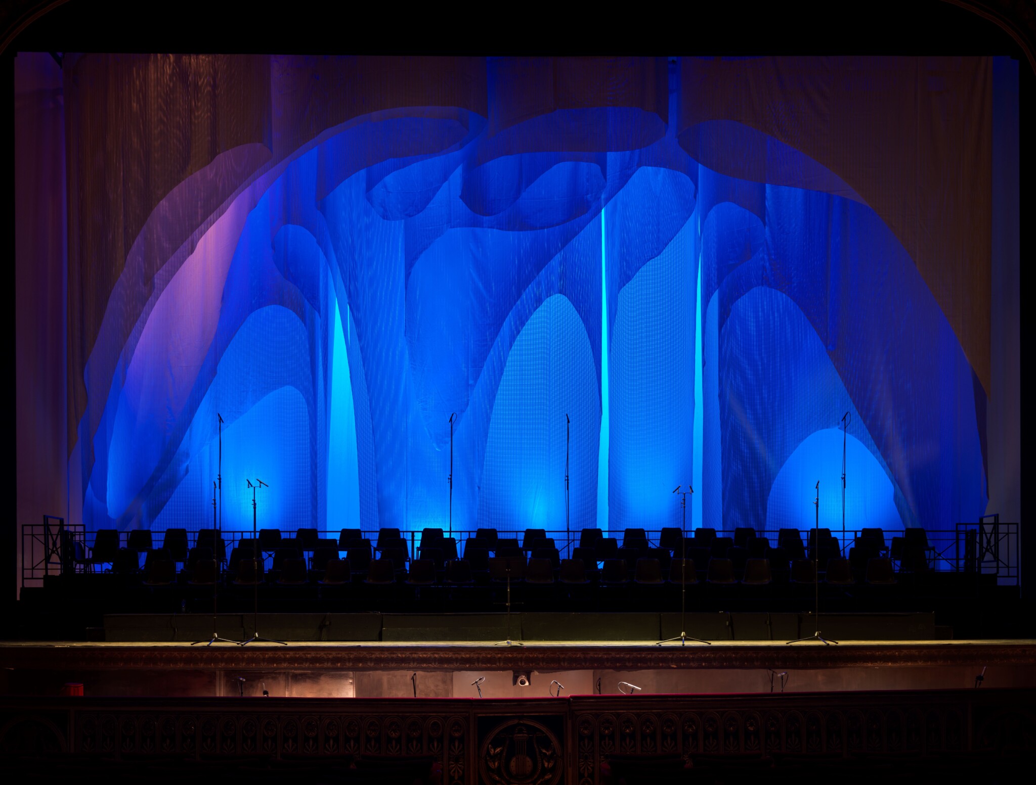 We designed the scenography for Giuseppe Verdi’s opera “Simon Boccanegra” at the Teatro di San Carl in Naples, the world’s oldest opera house (opened 1737). We set the stage with undulating swaths of fabric hung from above. This flowing material captures the atmosphere of the sea of Genoa where the story unfolds, the changing emotions of the characters, and the movement of light on the stage itself.