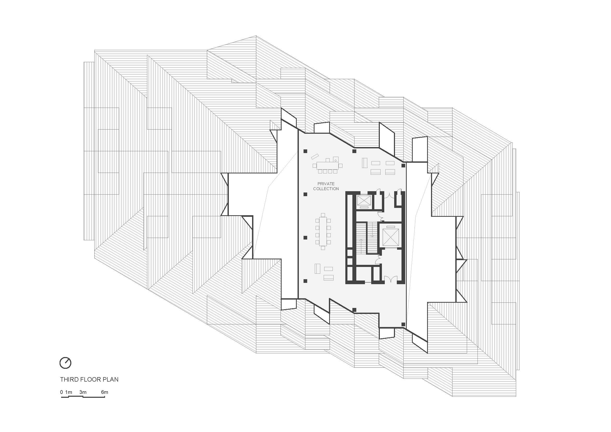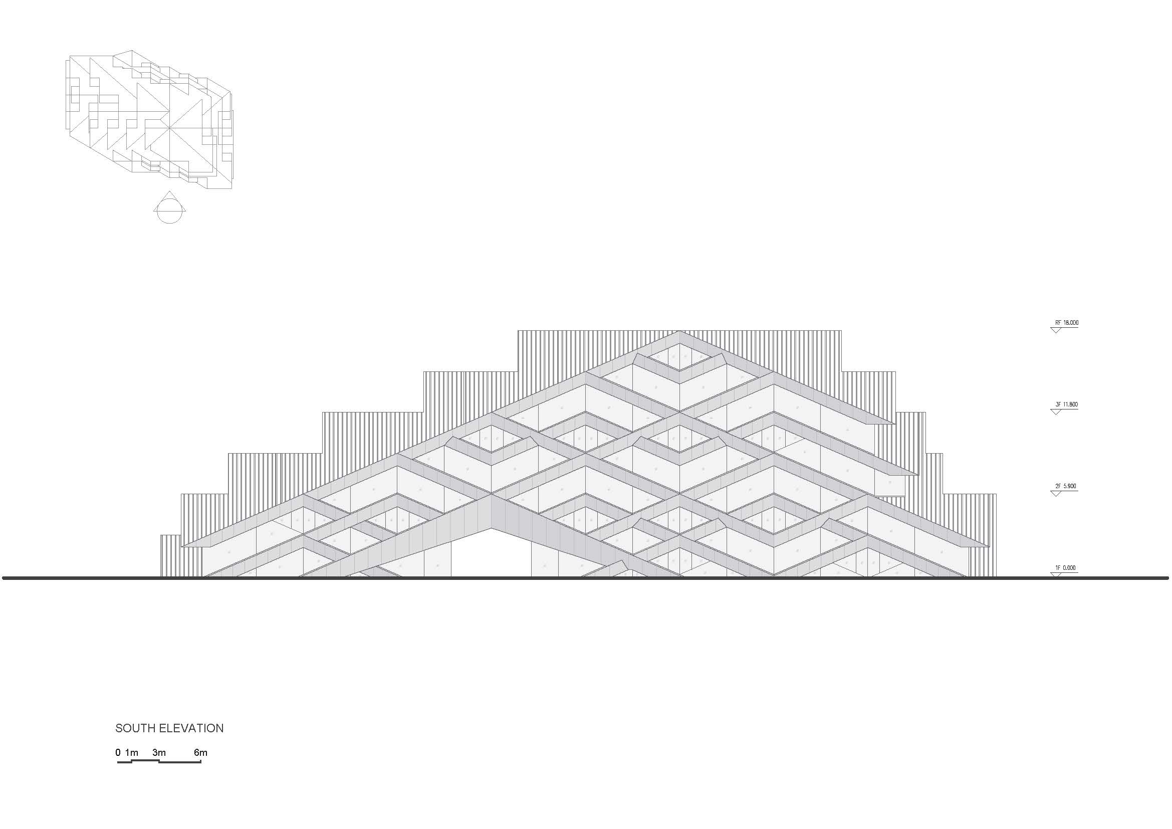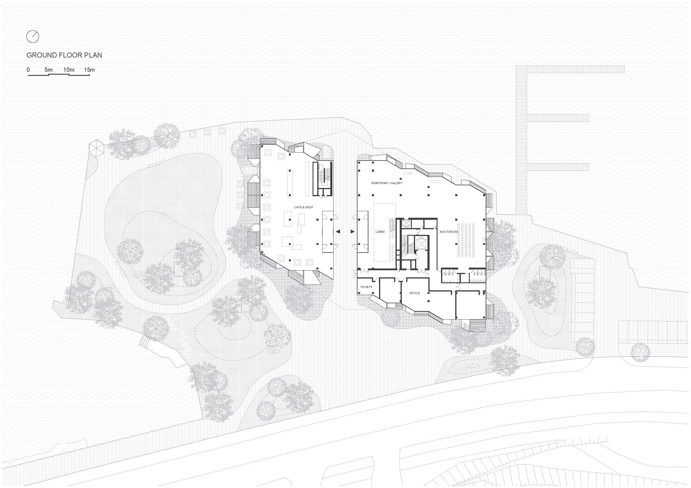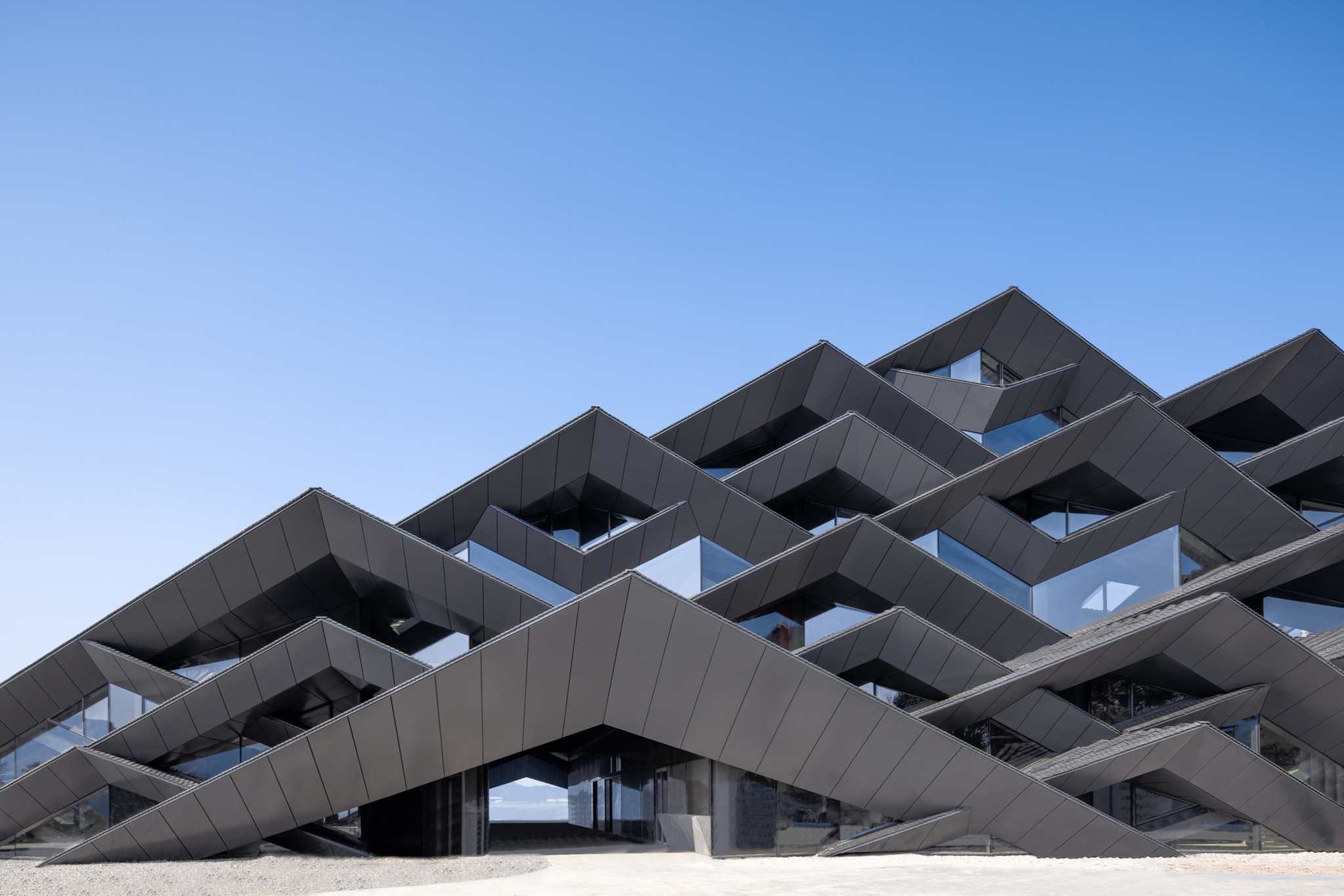 We designed the museum as a “mountain-like” building on the small peninsula that juts out into Dongqian Lake. The architecture blends into the surrounding landscape, turning itself into one of Dongqian Lake’s mountains.