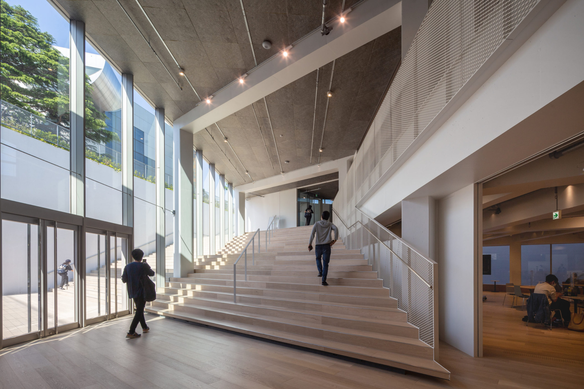 The line between the interior space and exterior landscape is blurred by continuing the stepped landscape into the building. This allows activities such as co-learning and joint workshops to be held simultaneously on different levels. The space flows ambiguously without clear spatial divisions, stimulating the senses of the users both visually and physically.