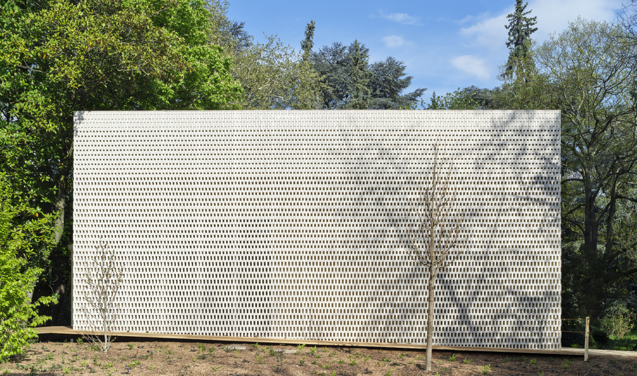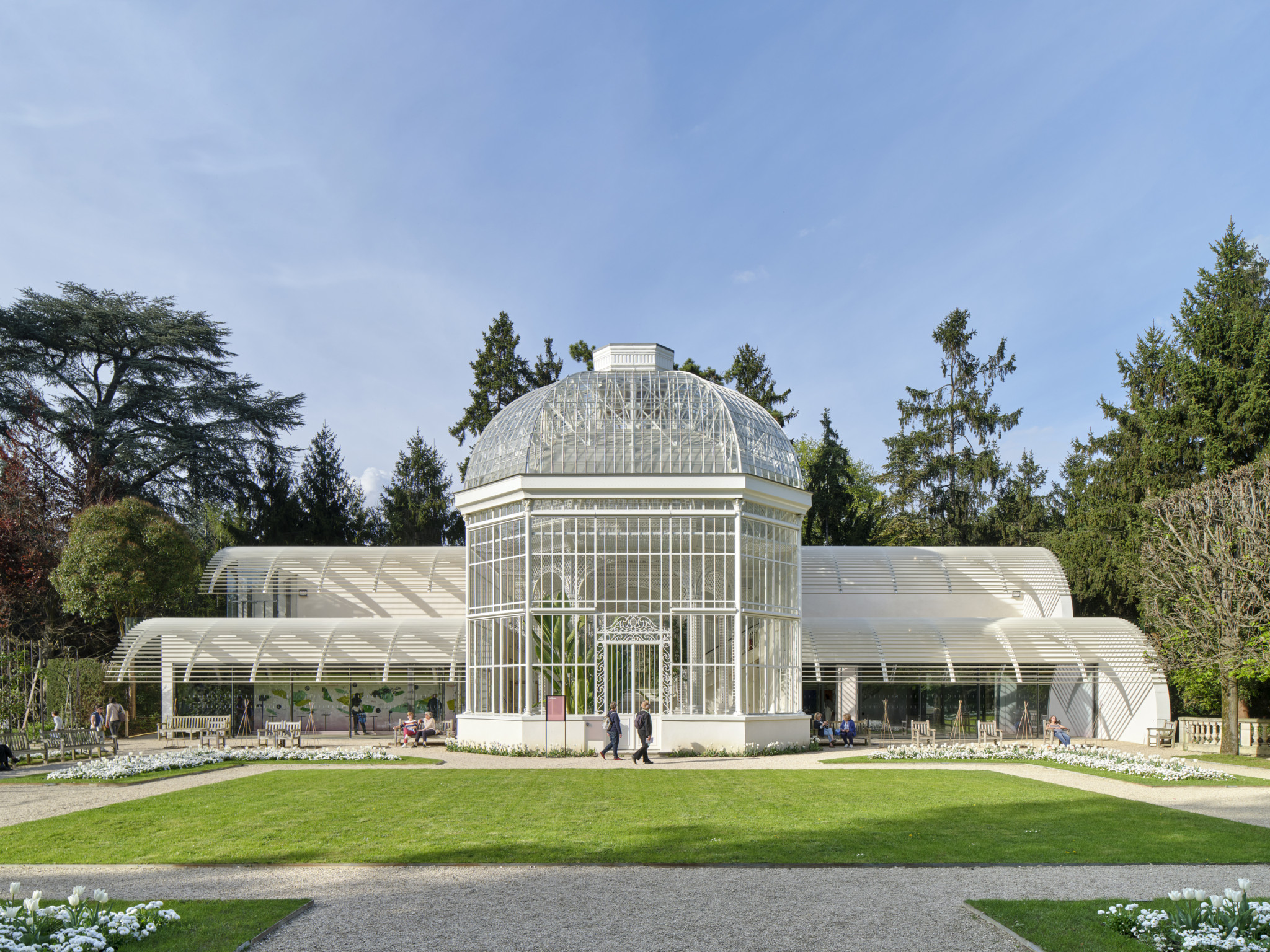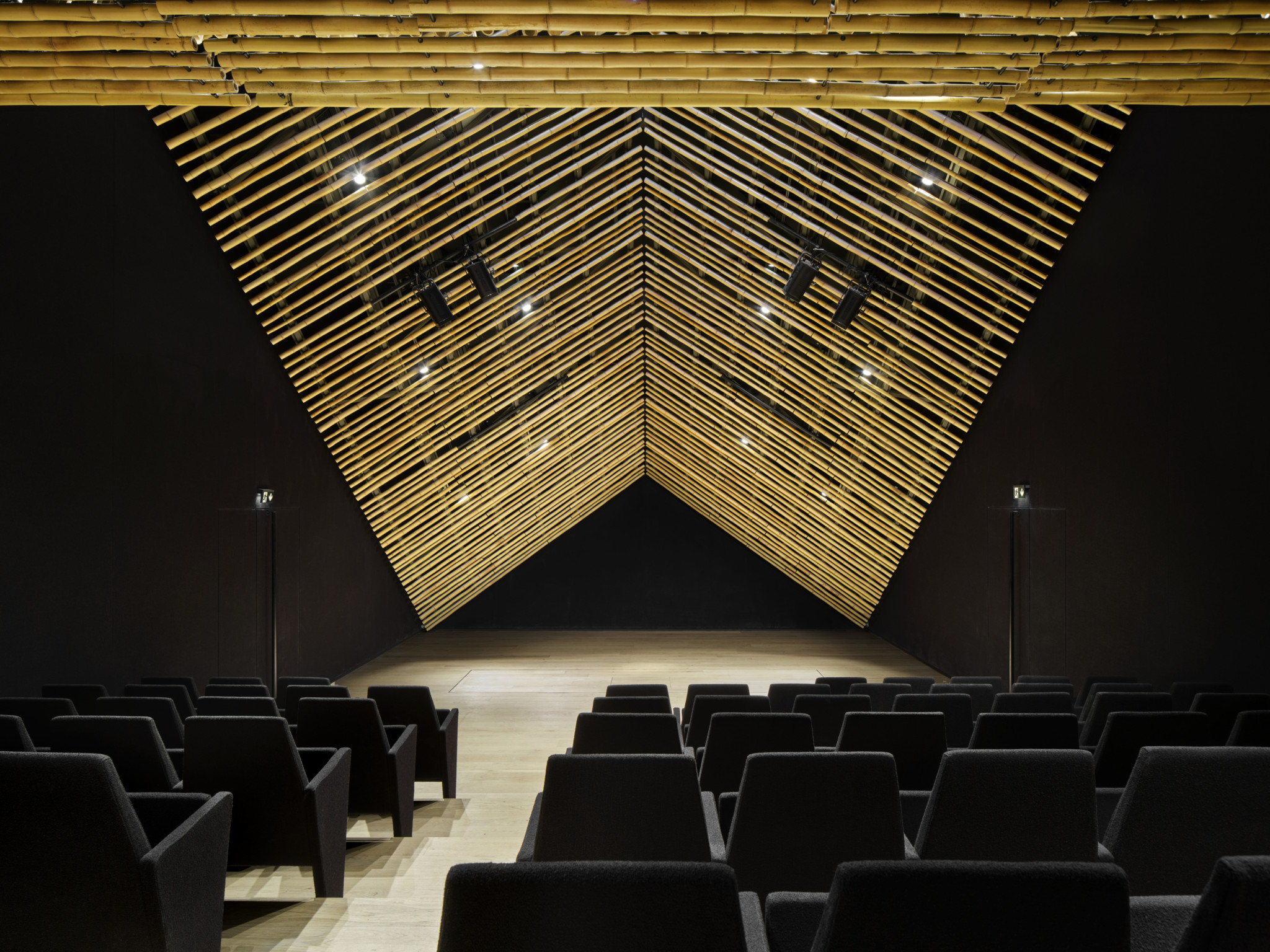 The display space was designed in an extended linear sequence from the paths through this garden. A screen made from aluminum and wood is inserted between the path and exterior environment while it continues to meander horizontally and vertically, controlling the relationship between the two. The dream of Albert Kahn of blending the garden and display space was achieved by blending the environment and architecture.