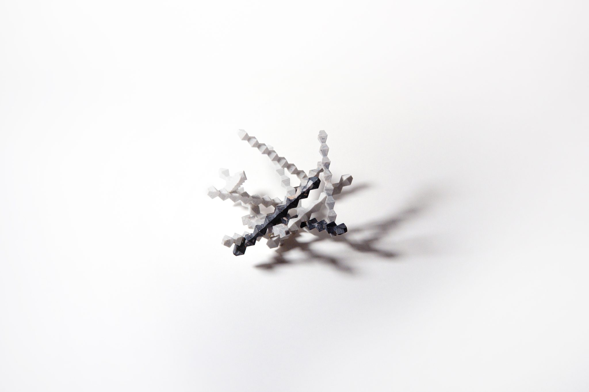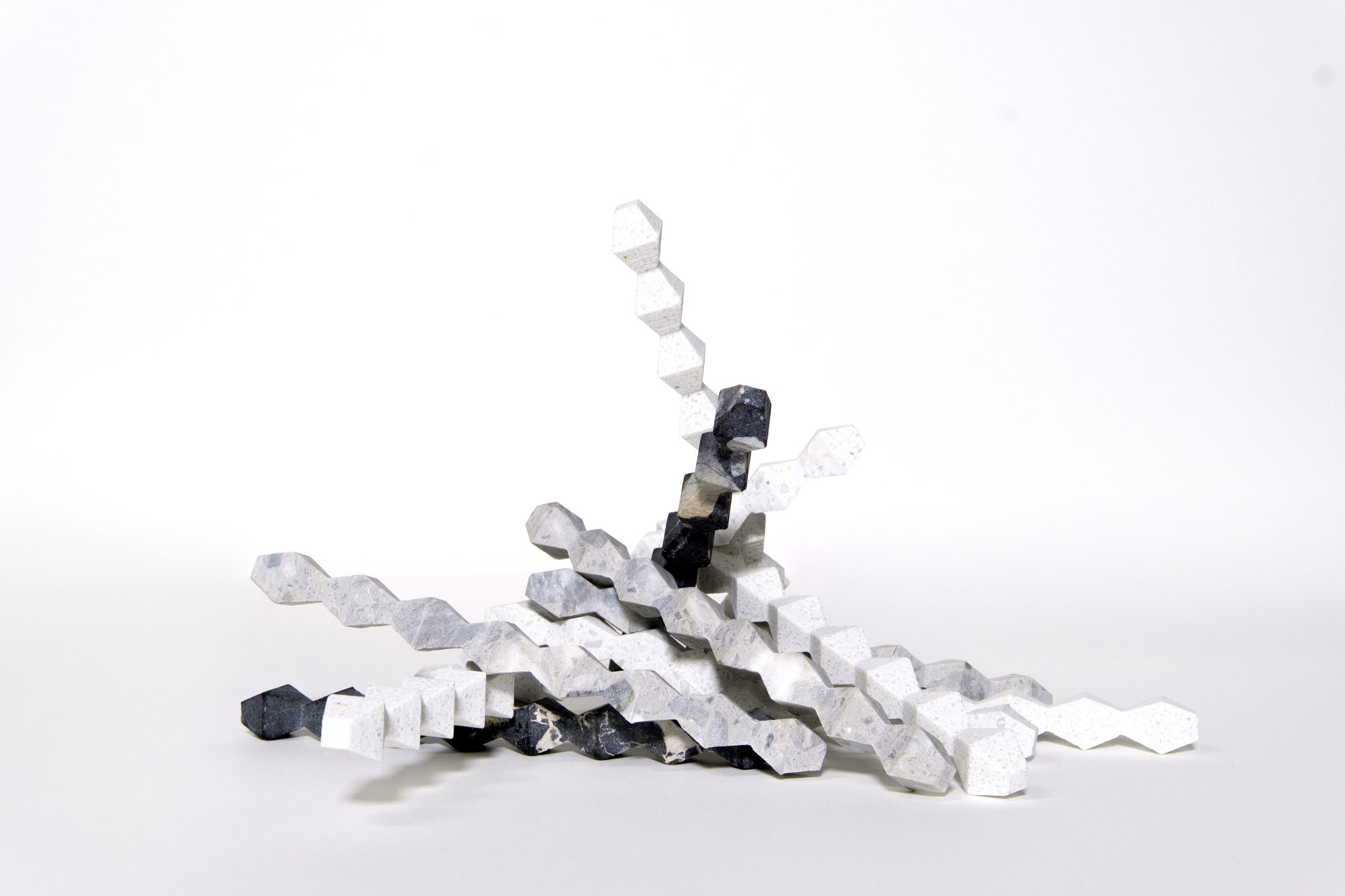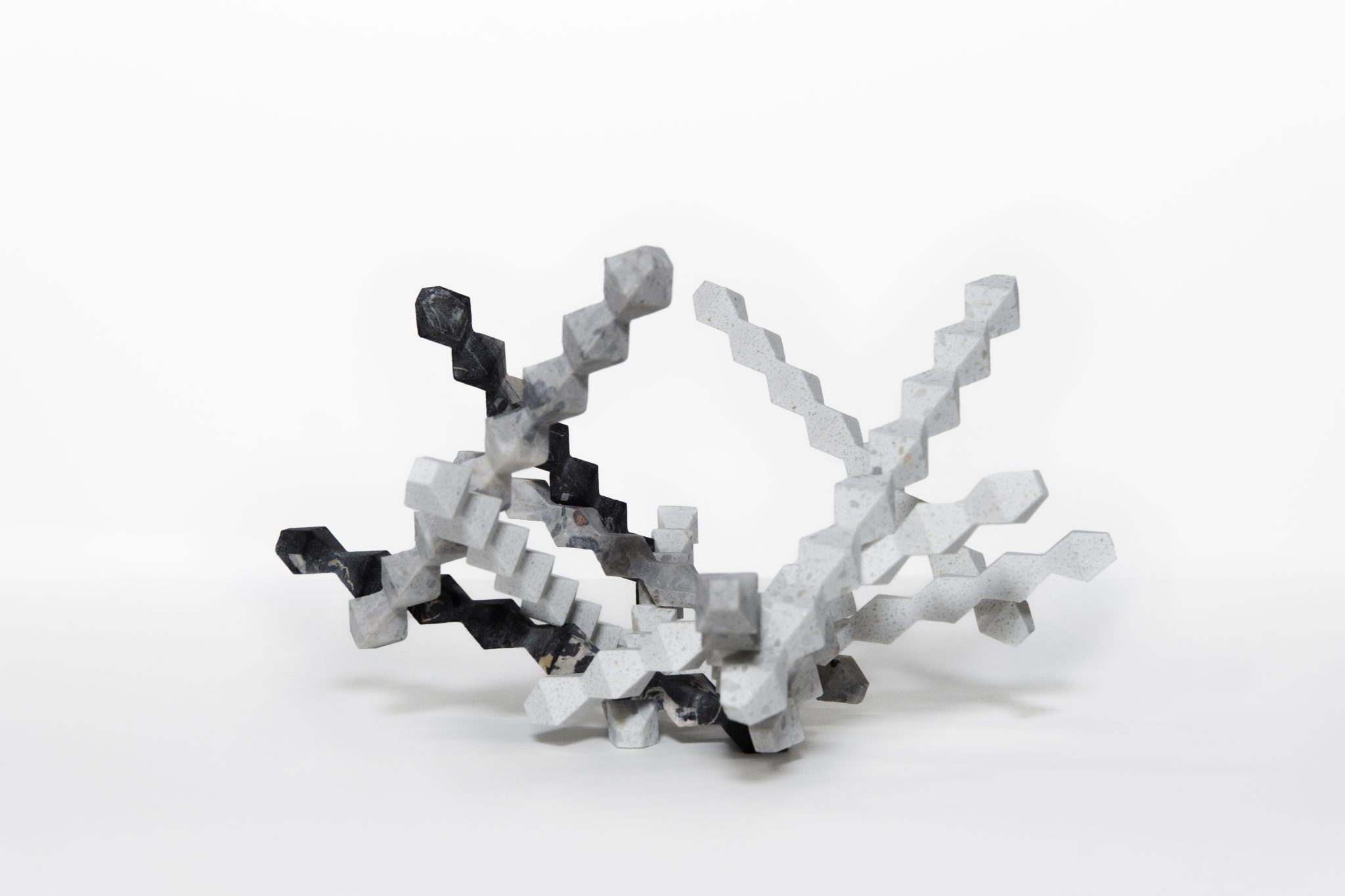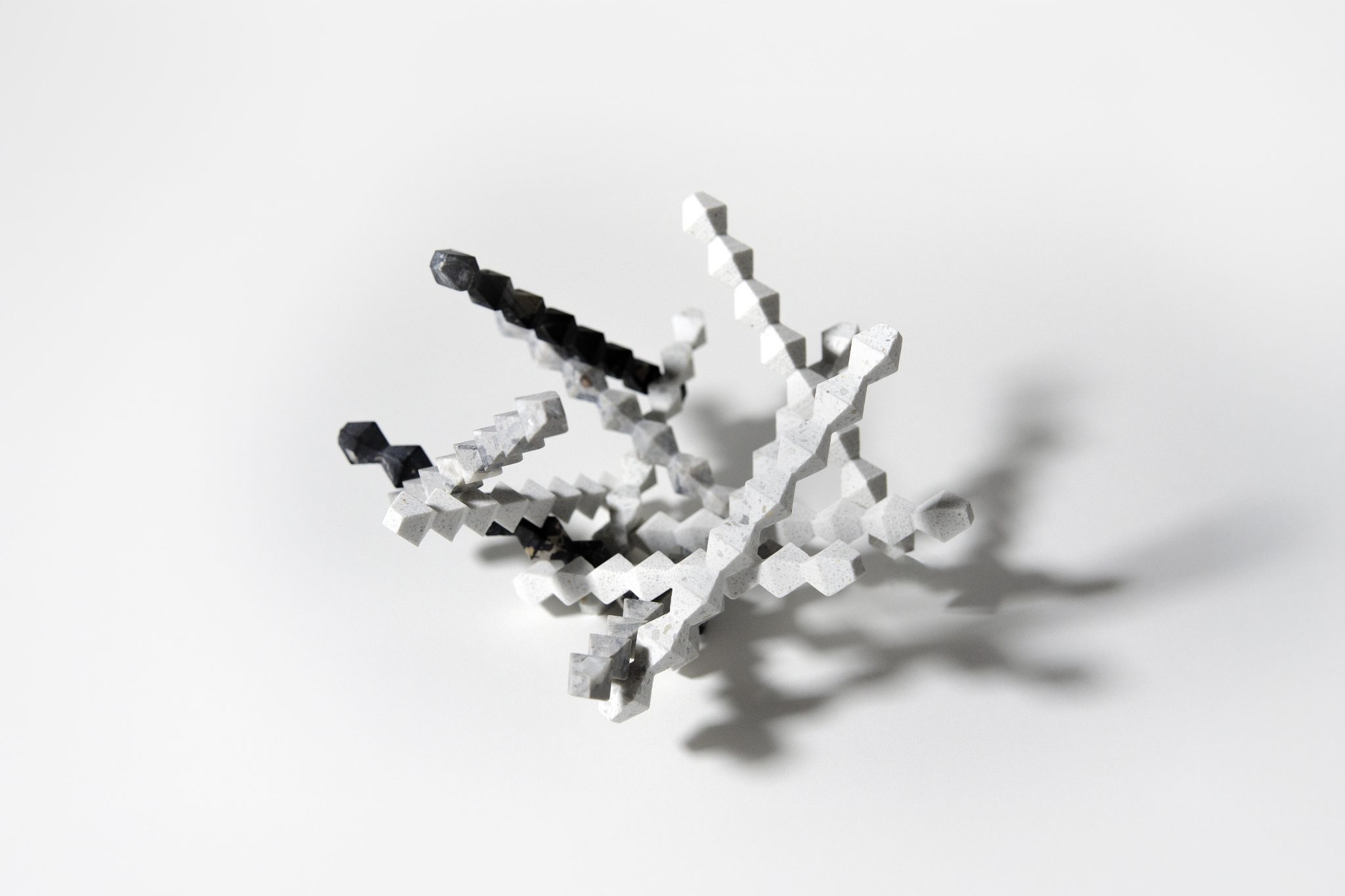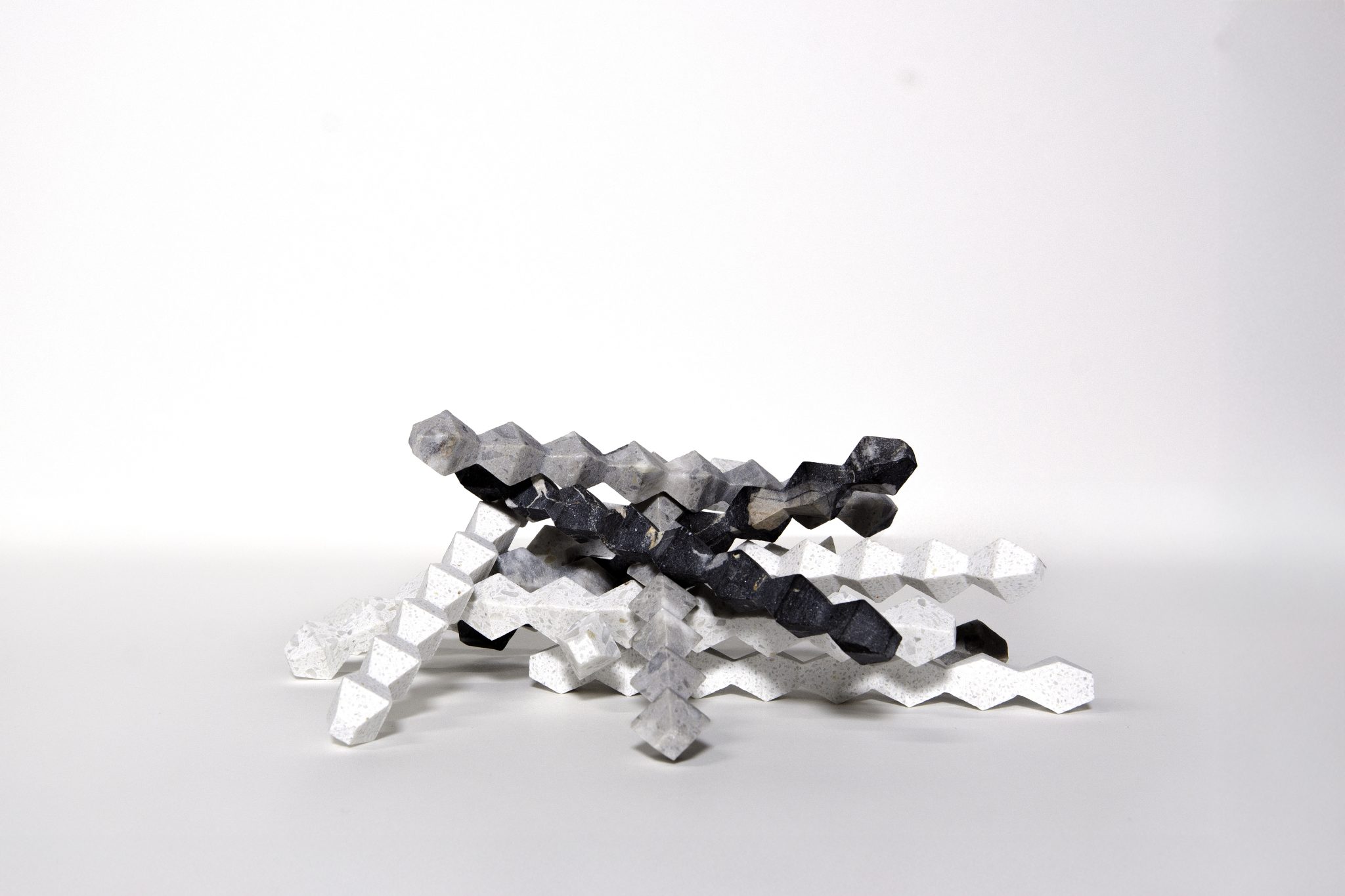 At the core of Ishi-Gumi is a universal joint that allows elements to interlock in infinite configurations. This flexibility encourages playful, gestural compositions, where forms emerge naturally rather than following fixed structures. Inspired by reciprocal structures, each piece supports the next in a balanced system, drawing from both Japanese and Italian construction traditions – engaging the user in an intuitive relationship with weight and gravity.