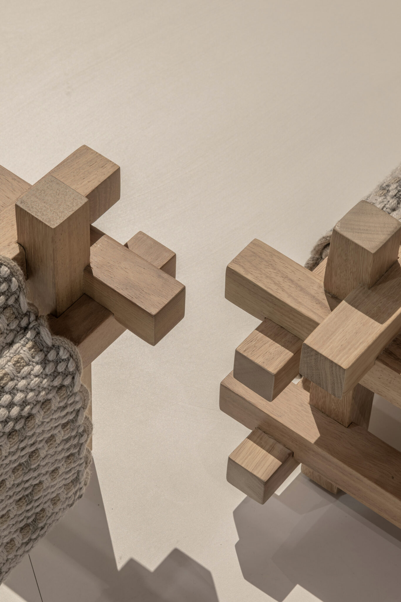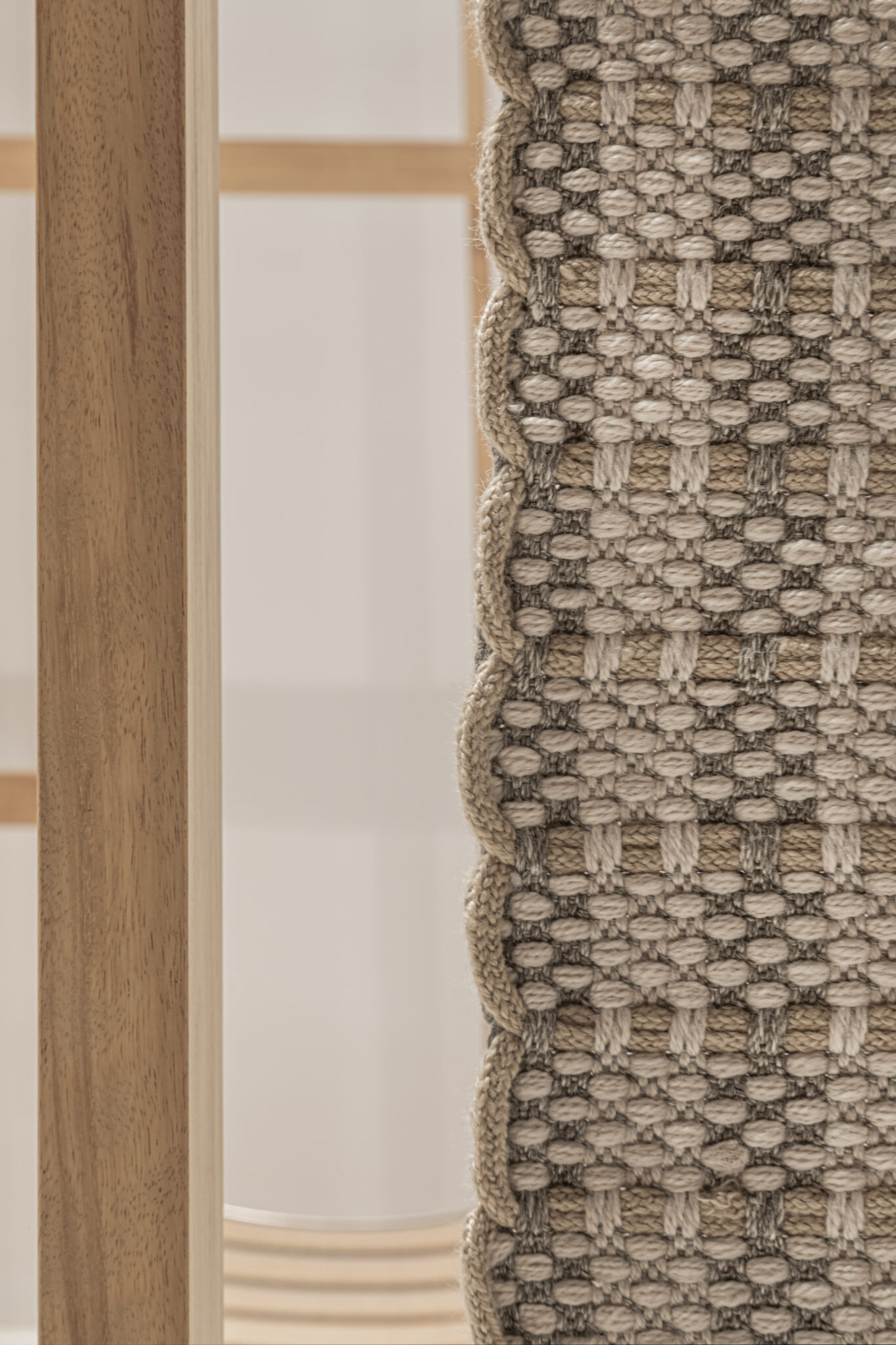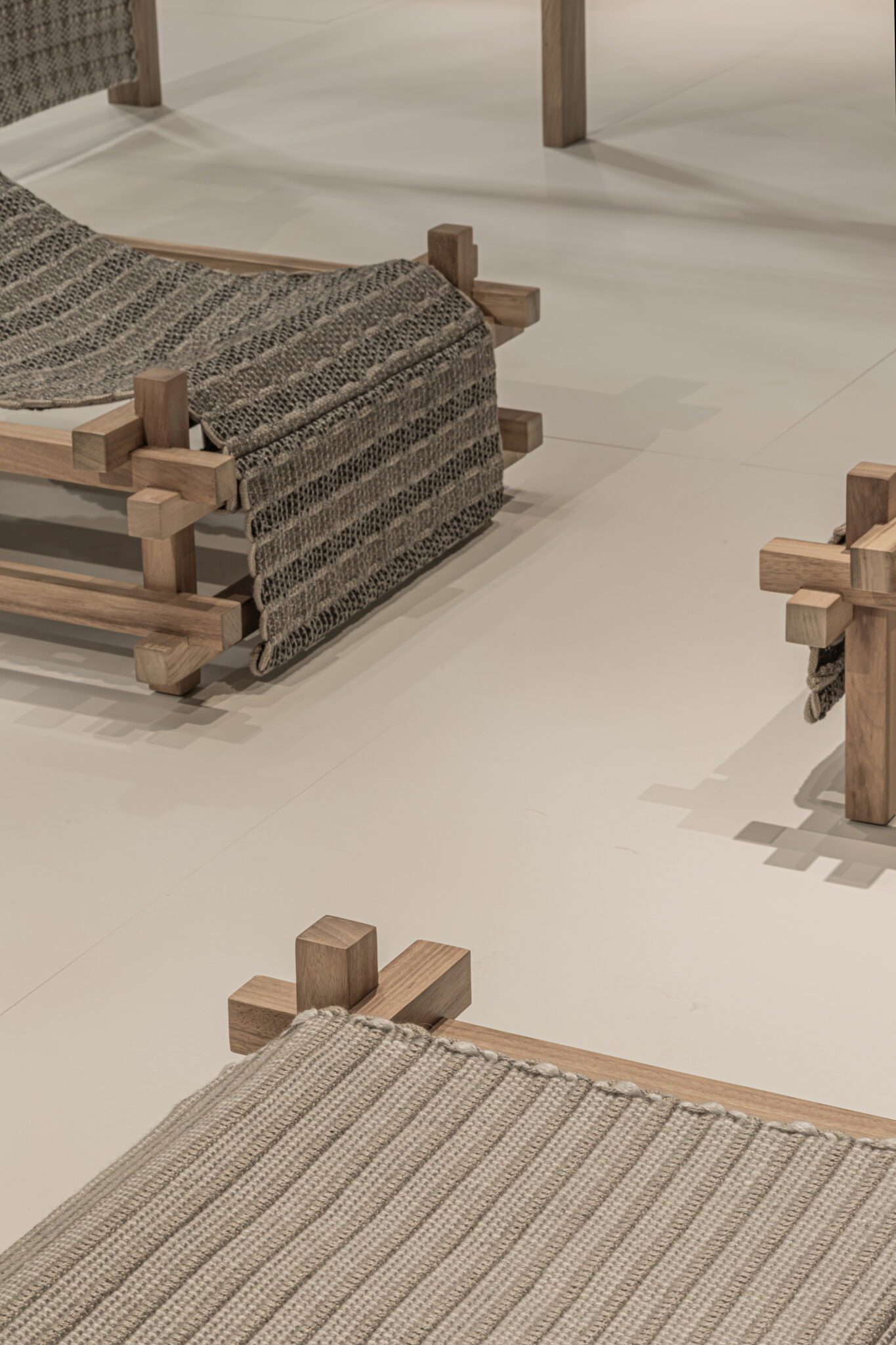 Building upon the GOZ collection, which weaves wool and wood together, we designed a universal system that integrates furniture and space based on the act of “weaving,” using recycled PET material as the primary component.