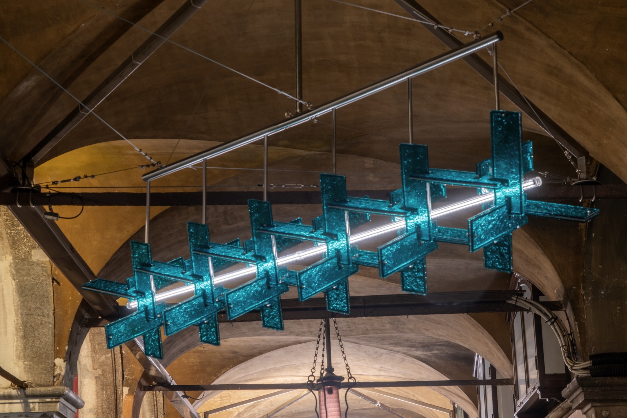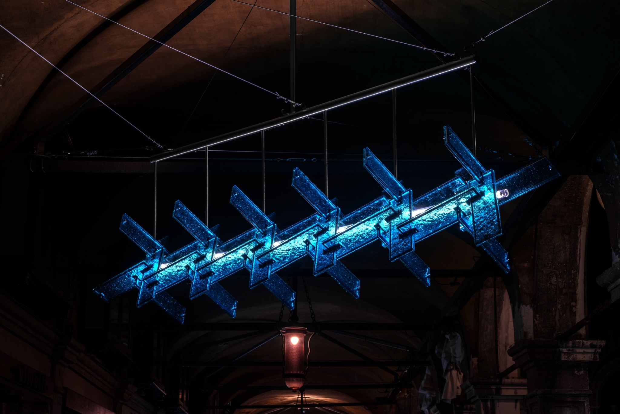 Glass chandelier designed for Salviati, an well-established Murano glass company in Venice. It is on display in Piazza San Marco from November 2024 to March 2025.