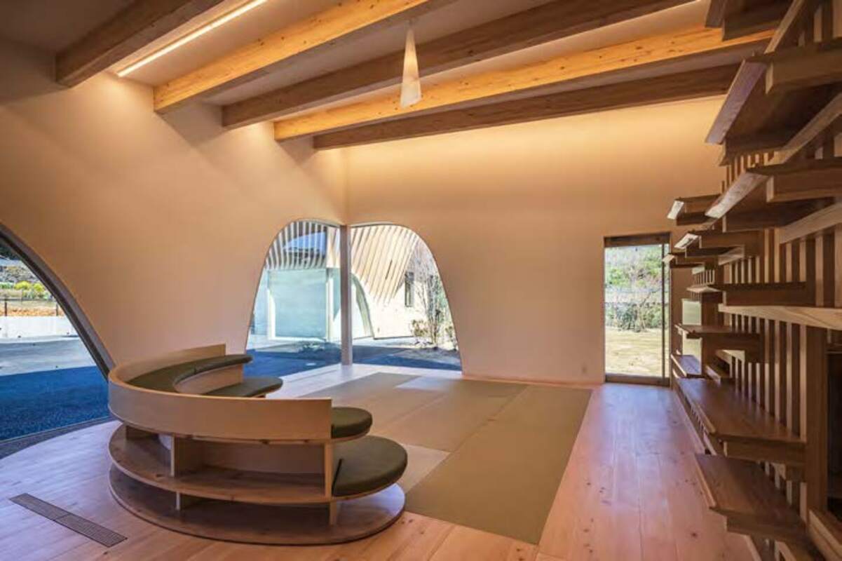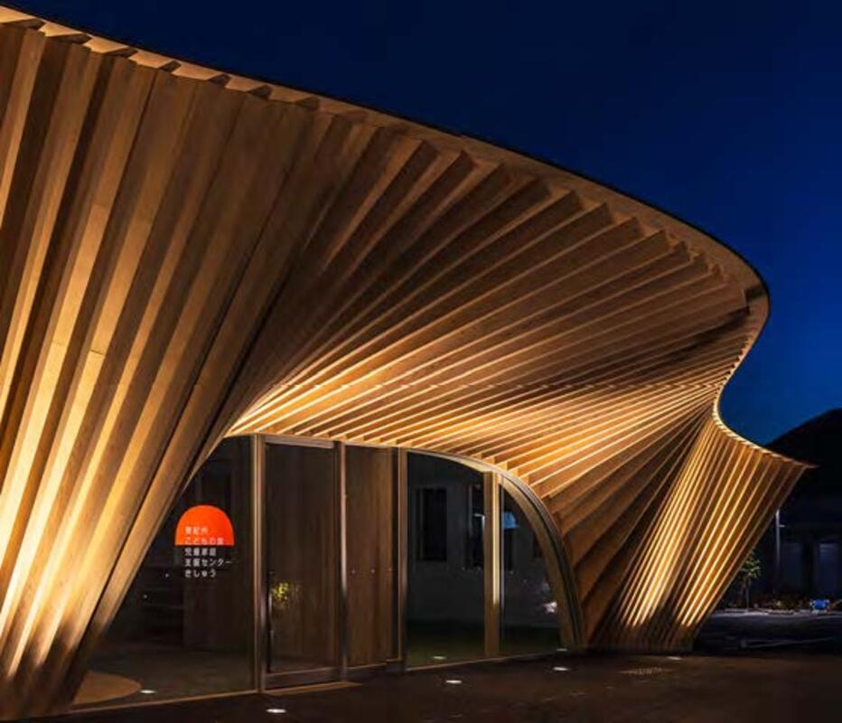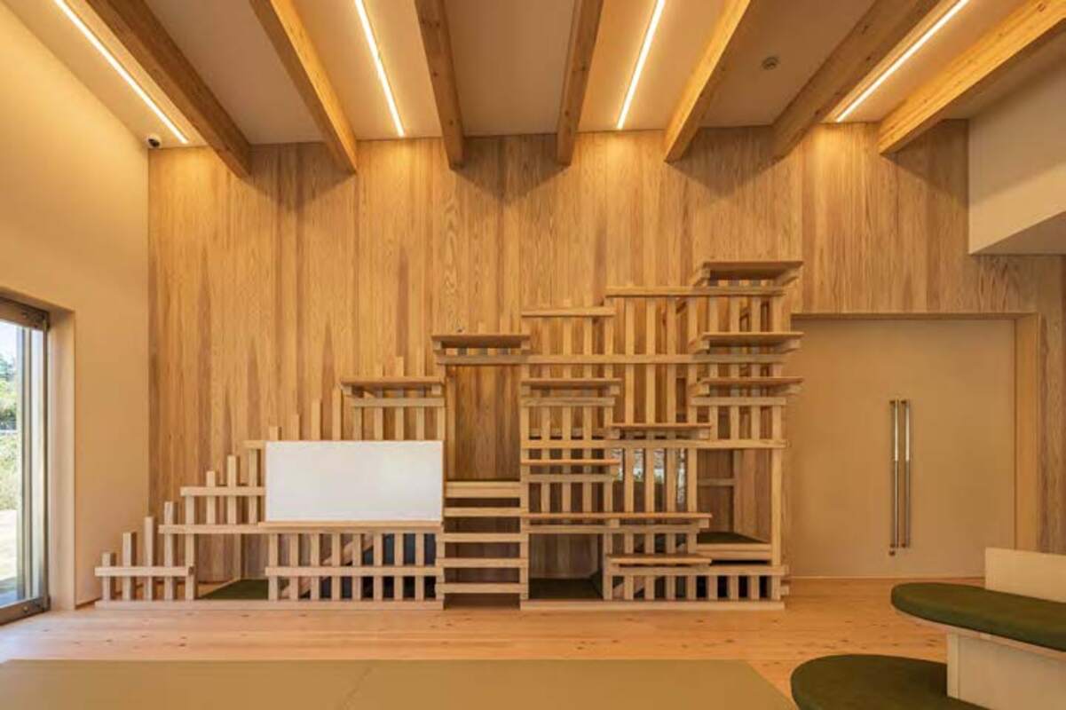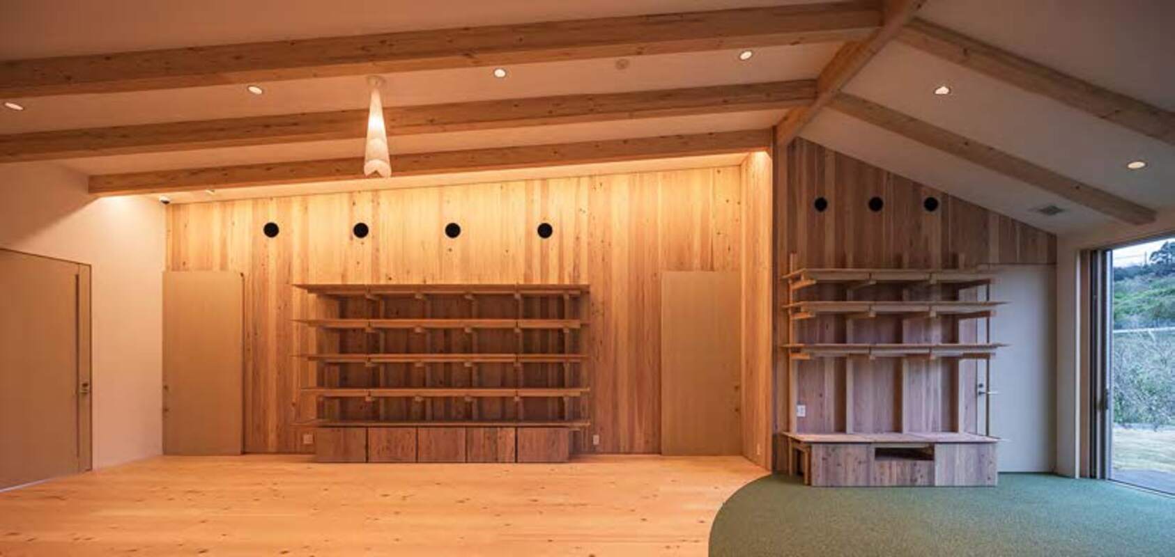 We used Kumano trees for the structure, exterior, interior, and furniture. The large overhanging eaves were designed to protect the architecture and the children from the nature of Kumano, where it rains frequently and the sun shines strongly.