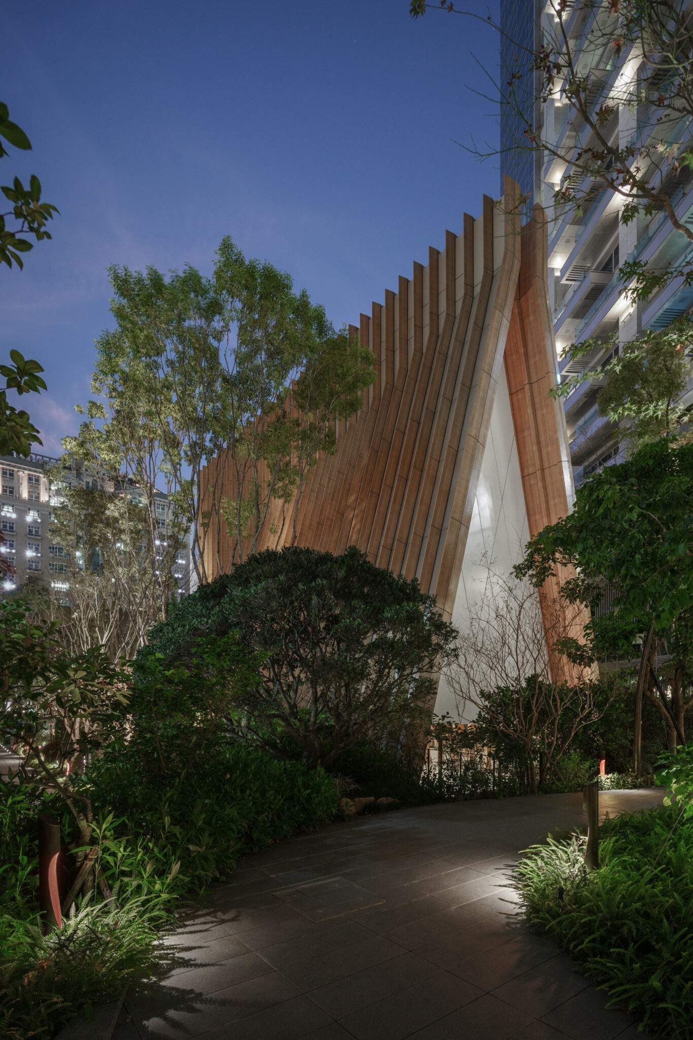 A sanctuary within the urban jungle, this chapel rises from a narrow site enclosed by towering buildings. In response to the site’s tight constraints, the architecture grows vertically, drawing inspiration from the gesture of praying hands to create a sacred and uplifting space for worship.