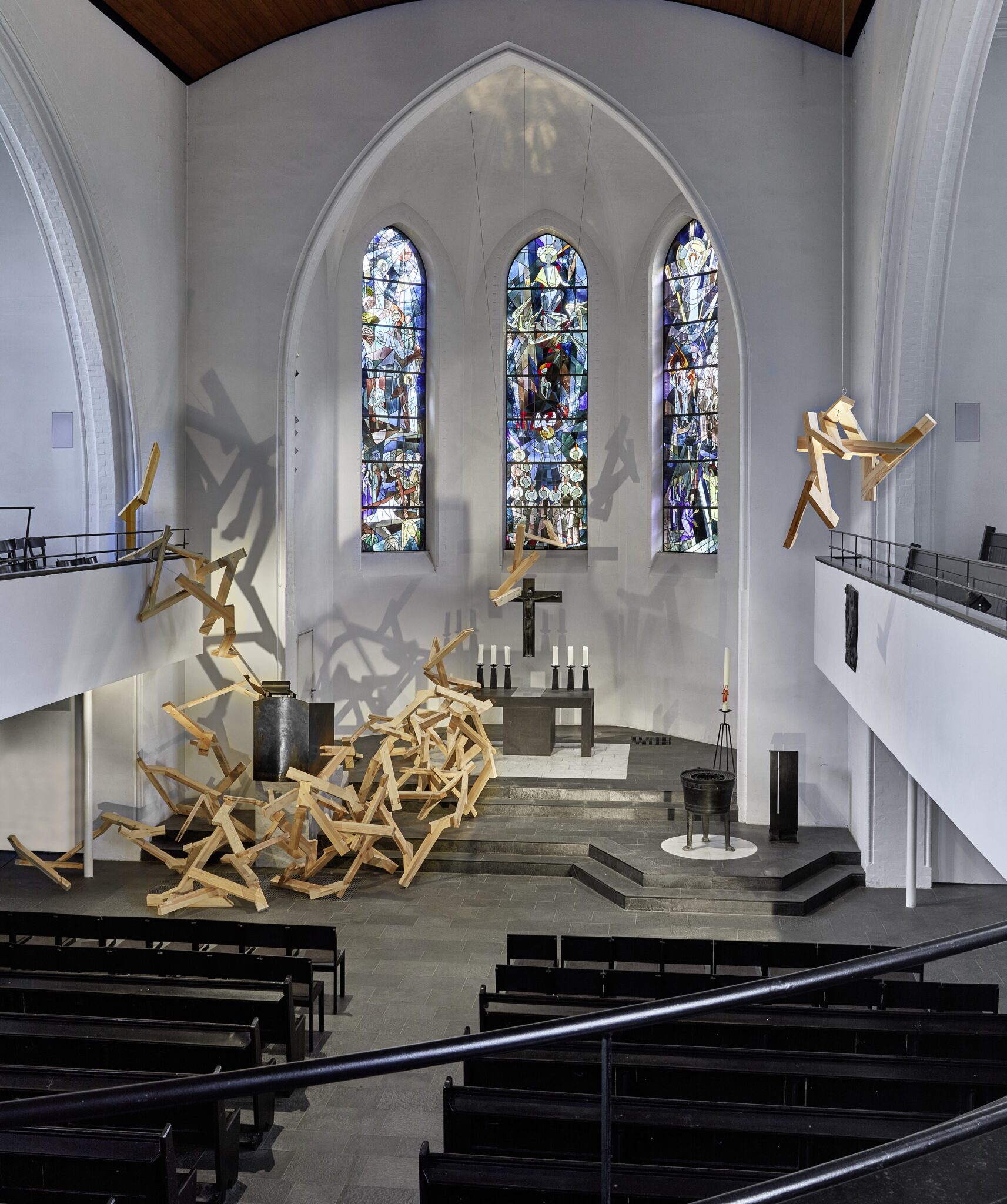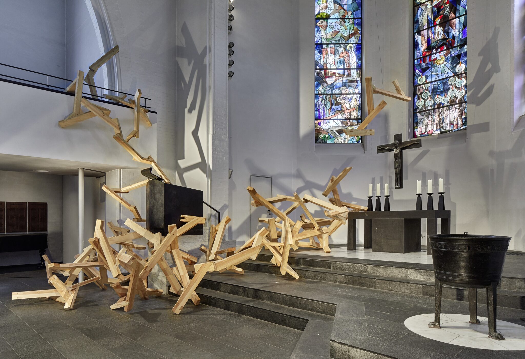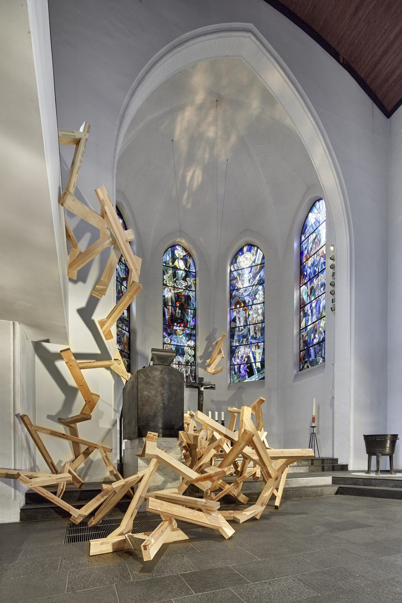 Now, four years later, The Cloud finds new life in the sacral space of Blankenese Church in Hamburg. This setting, in collaboration with students from HafenCity University Hamburg and Krakow University, allows the piece to fully integrate material, shape, light, music, and atmosphere into one cohesive experience. All components—traditional craftsmanship, natural materials, and digital technologies—are woven together to express a new relationship between humanity and nature.