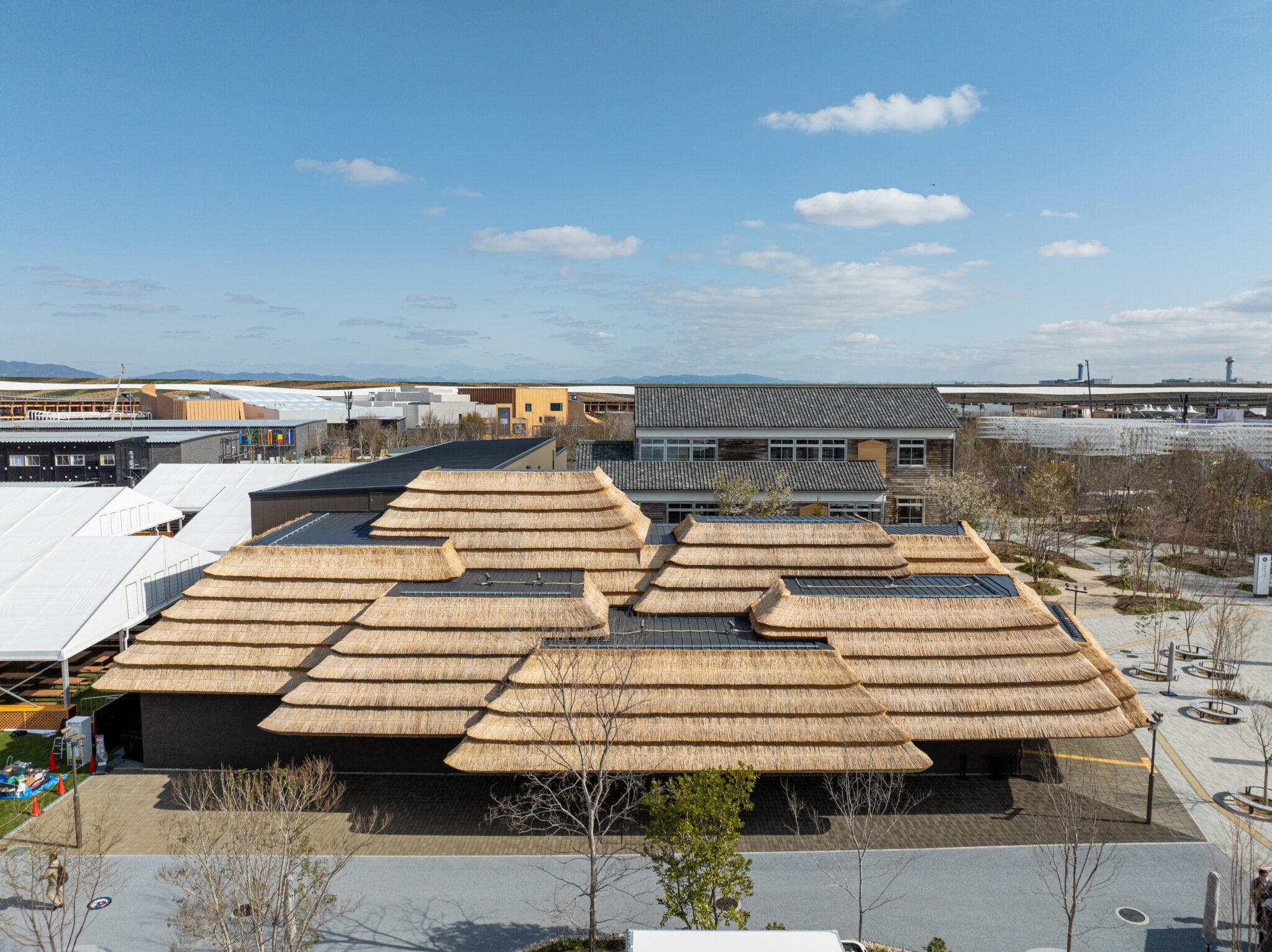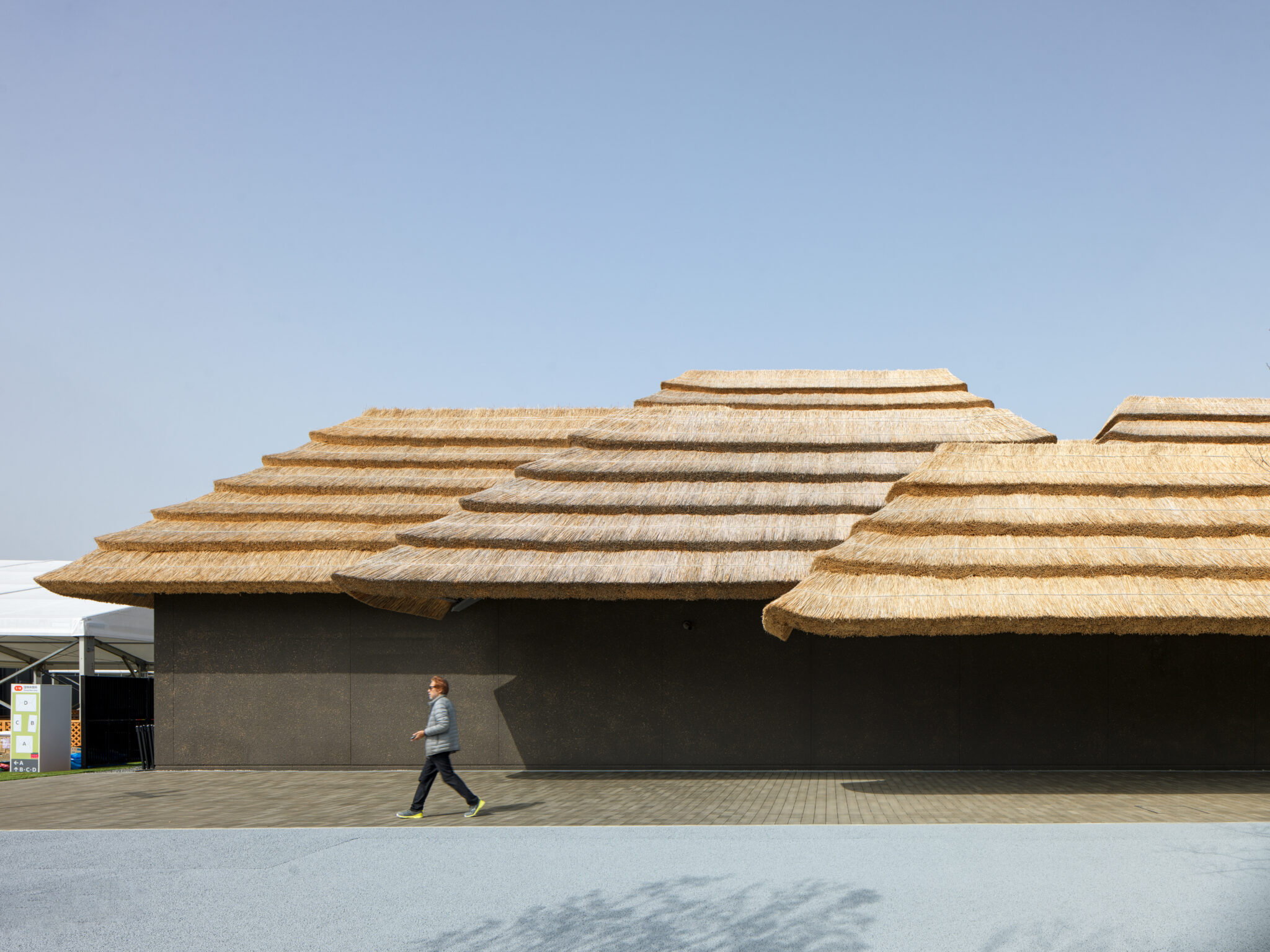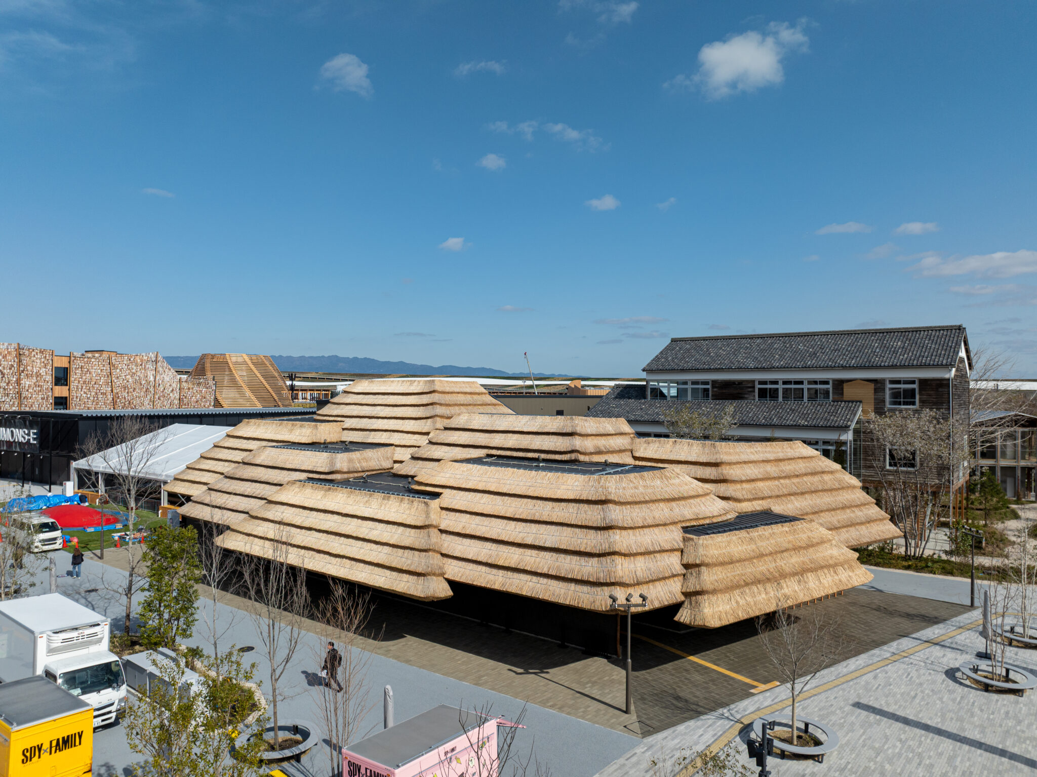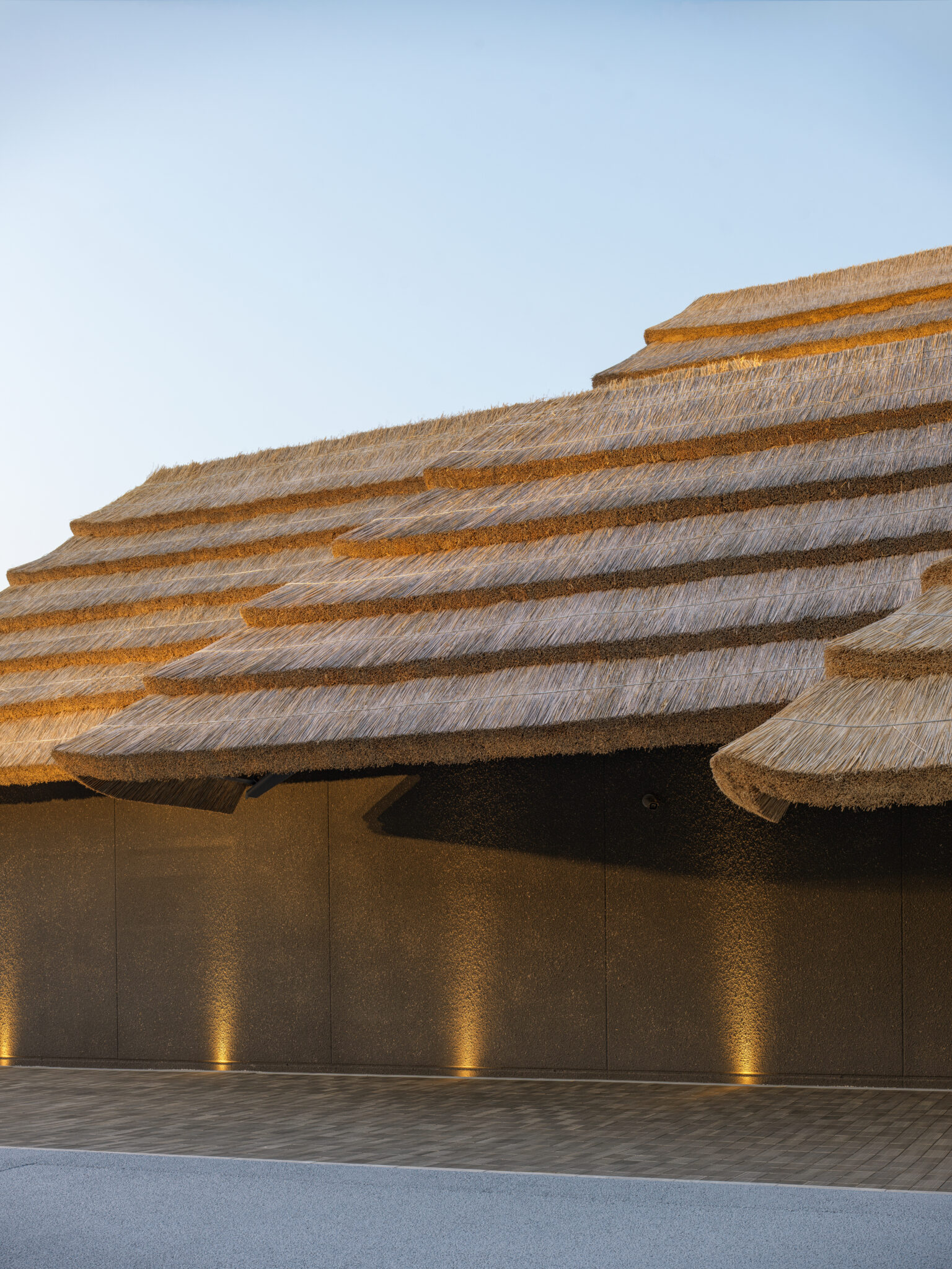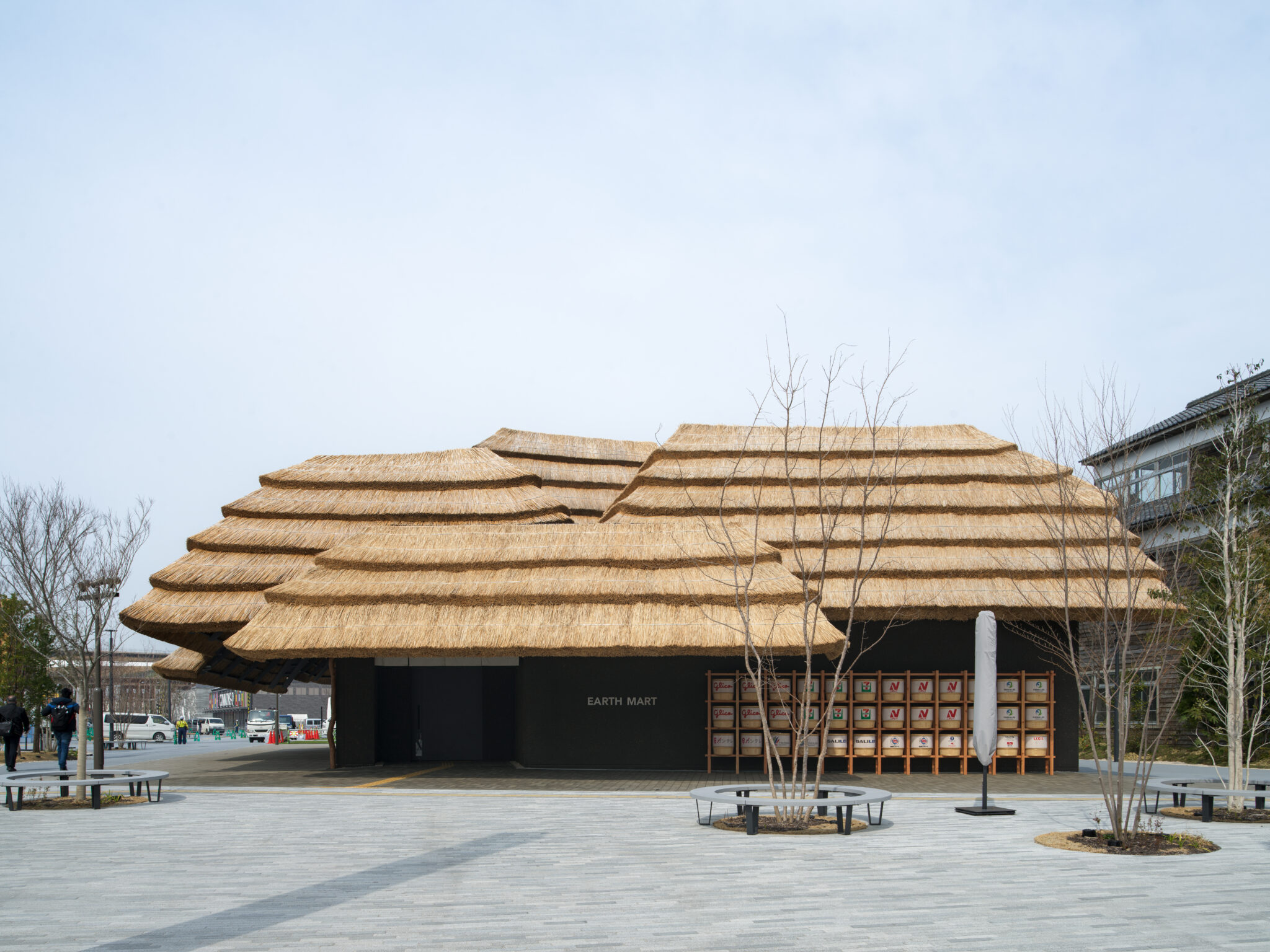 We designed the Japan National Stadium(2019) to use wood from each of Japan’s 47 prefectures to show the richness and diversity of Japan’s natural environment. Likewise, in this pavilion, thatch was made from reed and grass from five different locations across Japan. We applied the same thatching method as we did for Community Market Yusuhara (2010) in Yusuhara, where the thatch was layered in blocks, a detail that will enable the material to be recycled after the Expo period. Thatch has been recycled as feed and fertilizer since the Jomon Period, and with the blocks of thatch for EARTH MART, we wanted to share the wisdom of sustainability with the rest of the world.