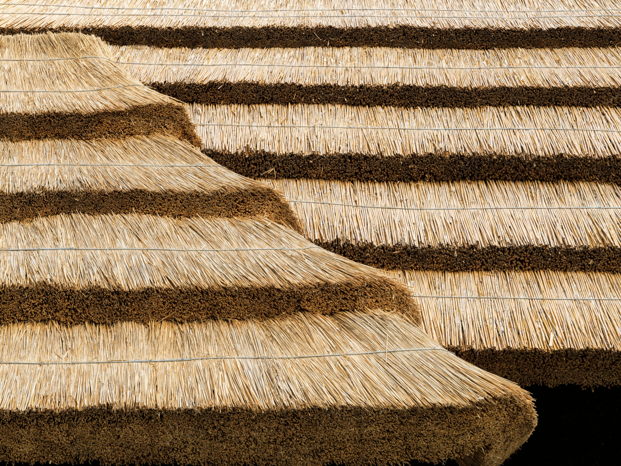 Thatch is the dried stalks of plants such as silver grass and reeds. Roofing with thatch was the most common construction method for Japanese houses before World War II. It was long used on the roofs for houses in the Jomon era even, which is said to have begun in the 13th century B.C. It means that Japanese people have lived under and protected by thatch for over 3,000 years. Thatch also plays an important role in the natural cycle of the woods behind villages (called satoyama), and is said to have protected the biodiversity of satoyama. In this sense, thatch was an essential material that supported the sustainable lifestyle of the Japanese people.