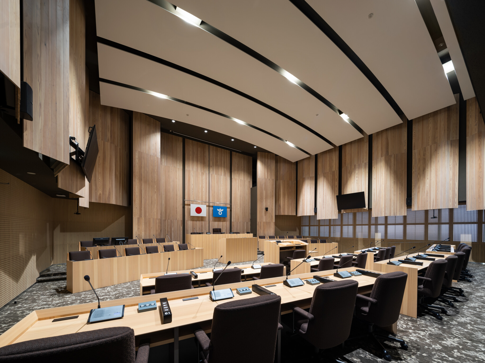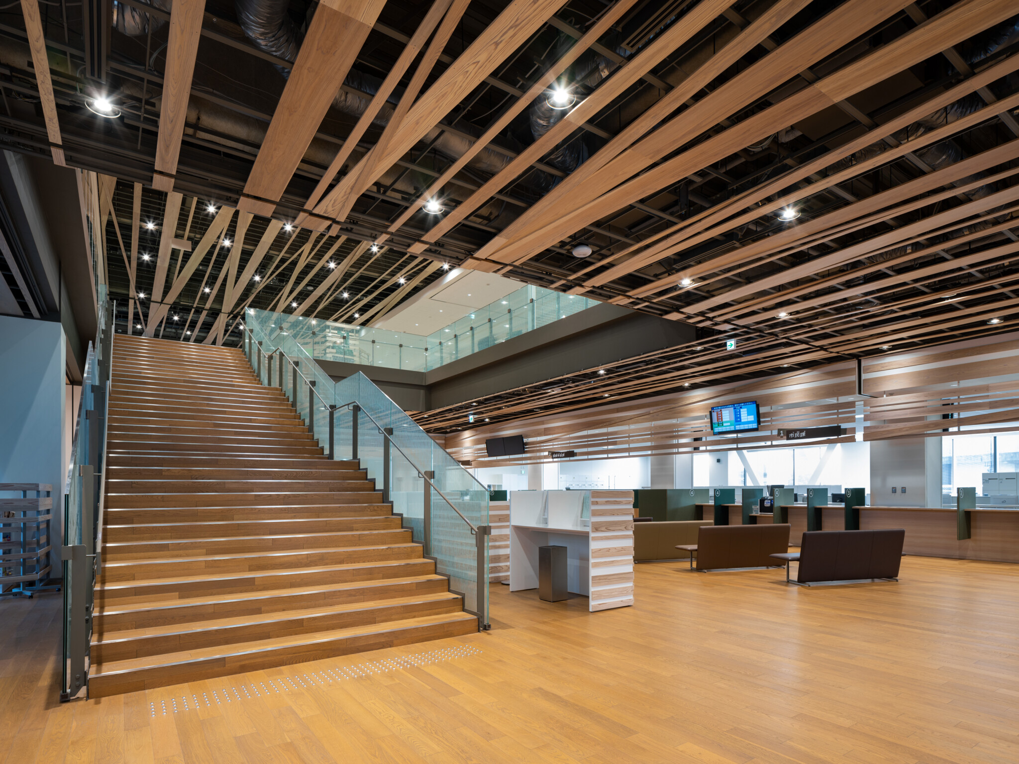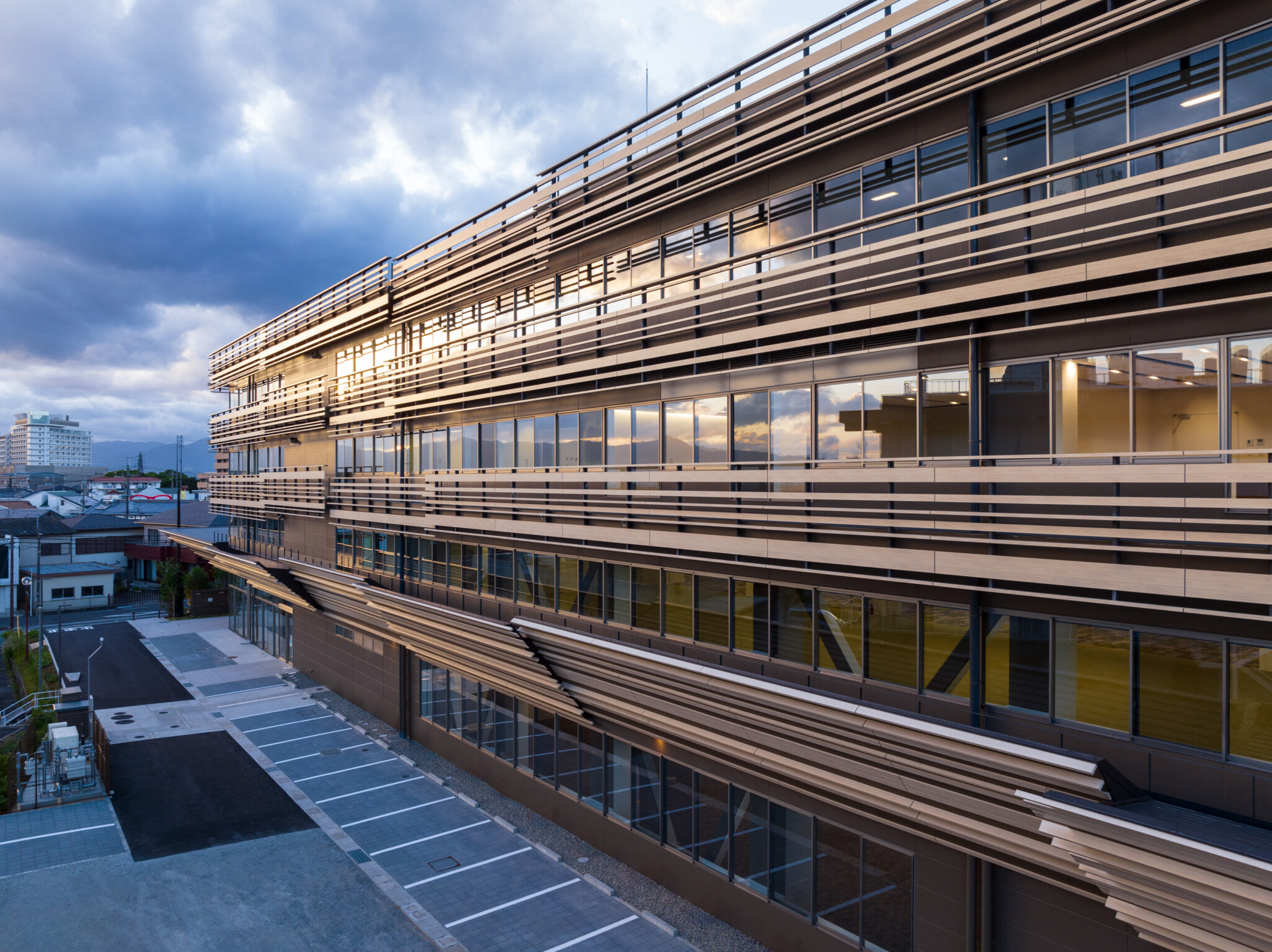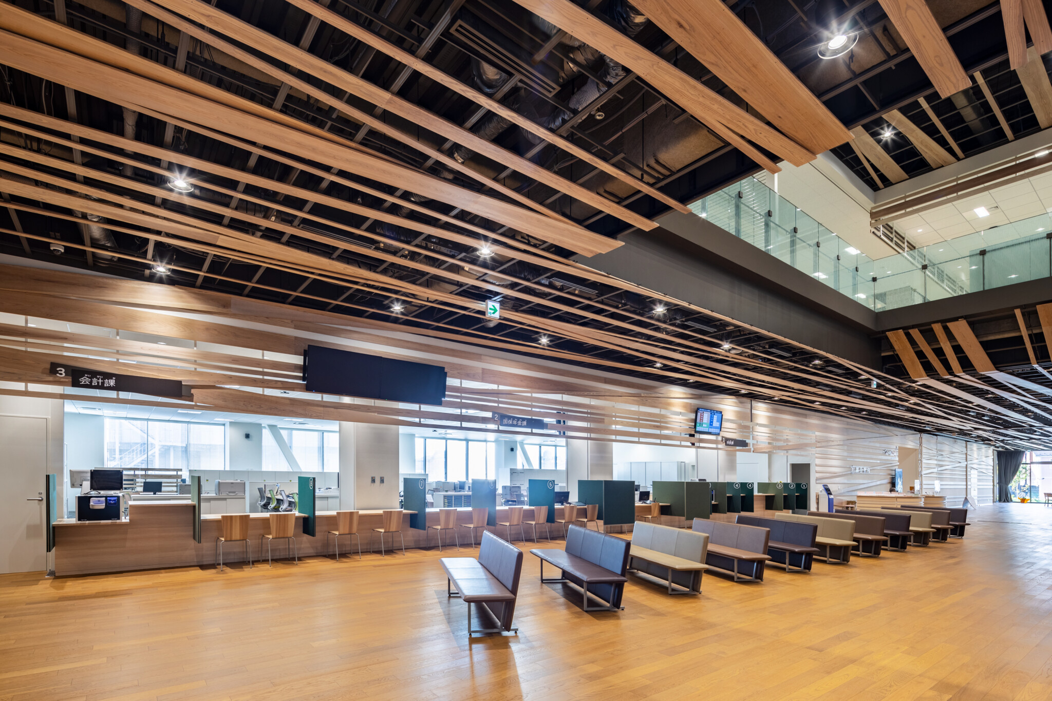 In Moriyama City, which once prospered as a post town along the Nakasendo Highway, we designed a government office building that is open and connected to the city like a former highway. The L-shaped lobby is placed in continuity with several roads leading to the government office building and is designed to avoid the existing government office building which is still in operation. Along the lobby there are large eaves, a plaza, café, a civic hall, and various reception desks to welcome citizens and provide a place for public activities. Walking around the lobby will exhibit a lively atmosphere where civic activities and administrative functions are integrated. Inside the building local timber is actively used and the eaves and balconies are wrapped with varying delicate wood louvers to create a warm and welcoming government building, fitting to Moriyama’s rich natural environment.