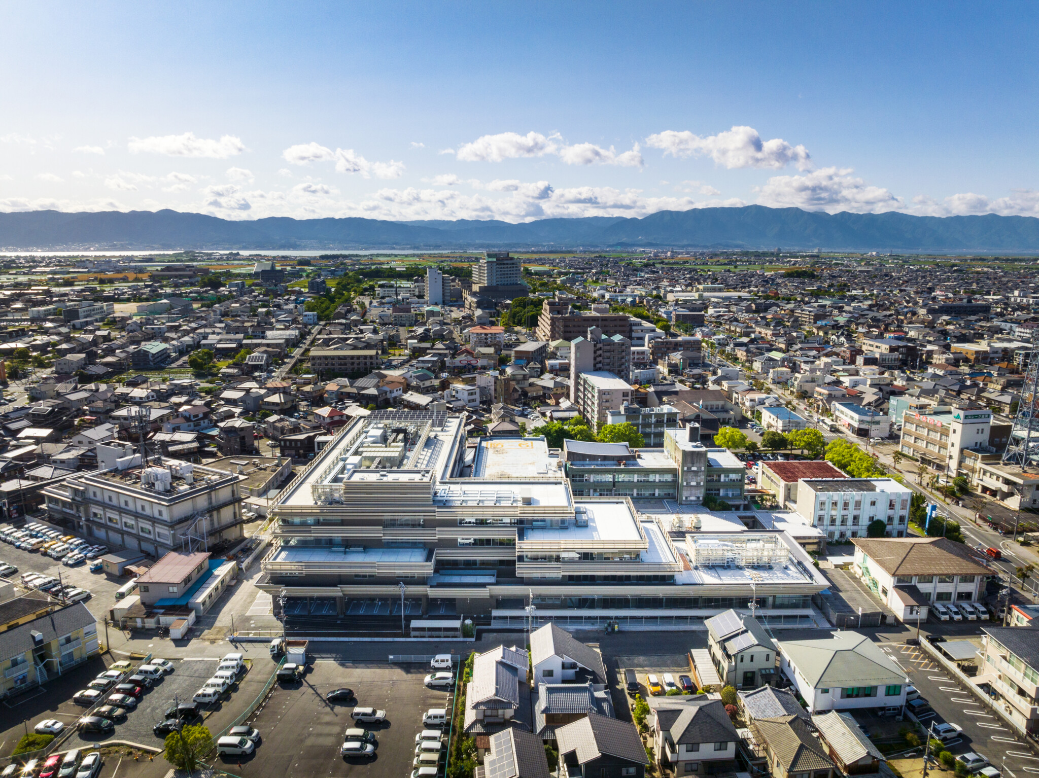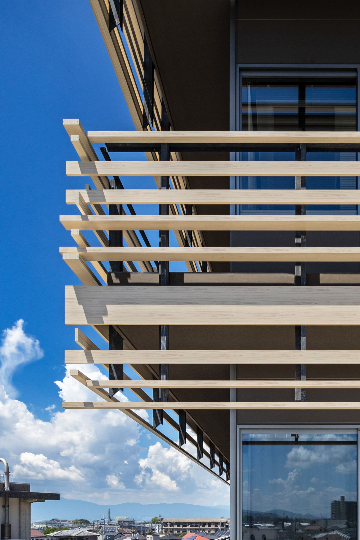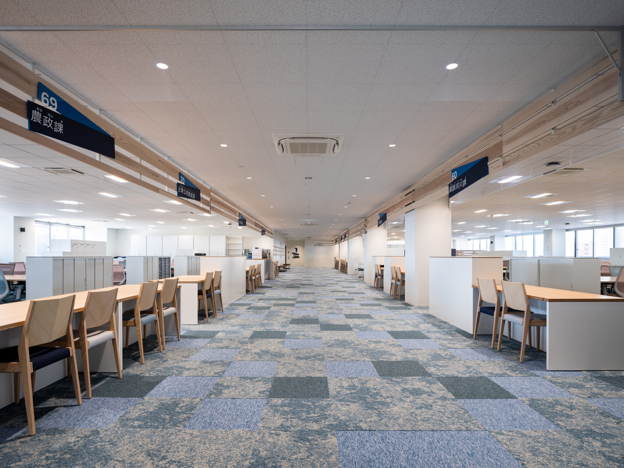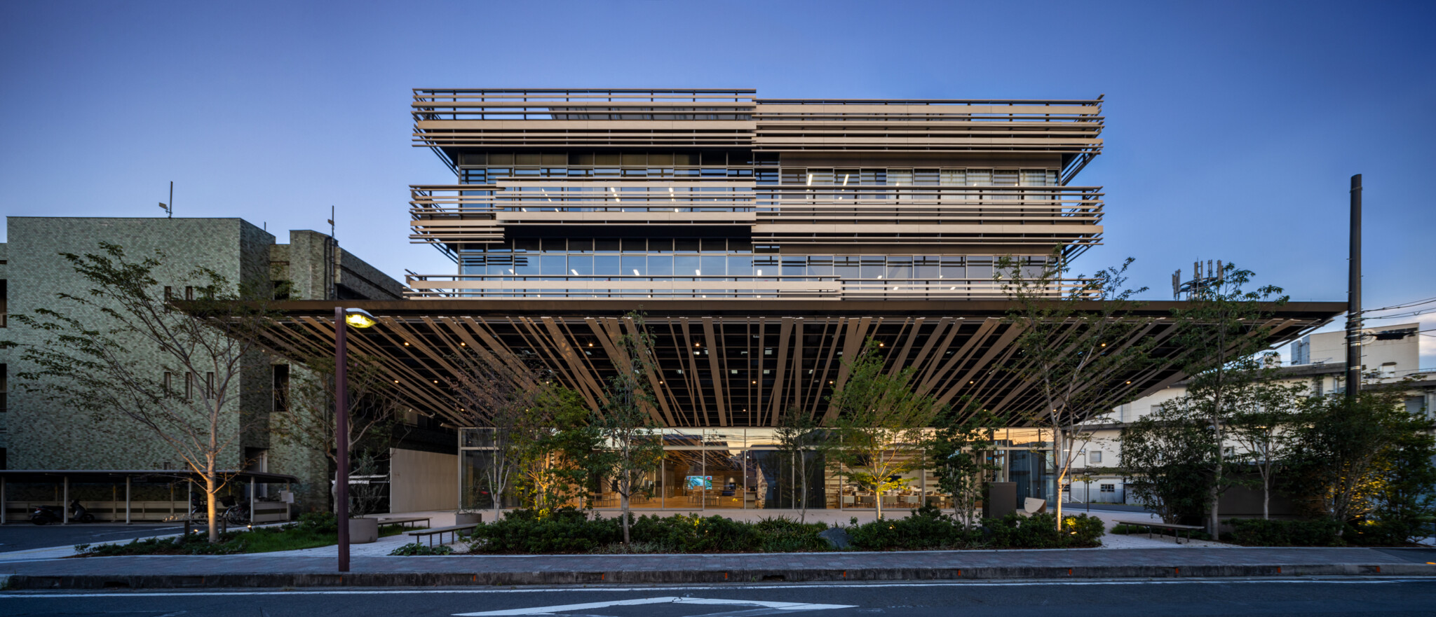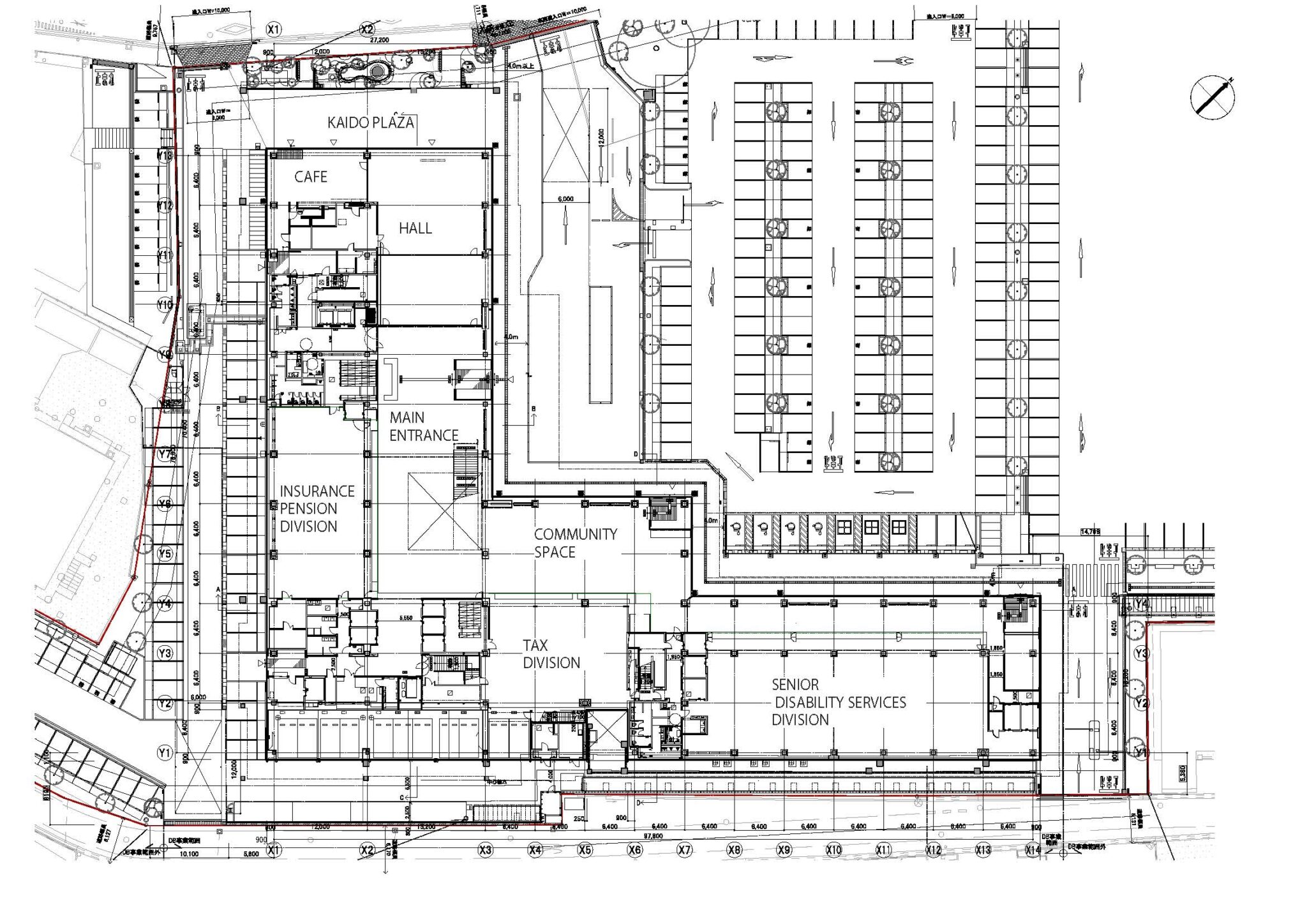 In Moriyama City, which once prospered as a post town along the Nakasendo Highway, we designed a government office building that is open and connected to the city like a former highway. The L-shaped lobby is placed in continuity with several roads leading to the government office building and is designed to avoid the existing government office building which is still in operation. Along the lobby there are large eaves, a plaza, café, a civic hall, and various reception desks to welcome citizens and provide a place for public activities. Walking around the lobby will exhibit a lively atmosphere where civic activities and administrative functions are integrated. Inside the building local timber is actively used and the eaves and balconies are wrapped with varying delicate wood louvers to create a warm and welcoming government building, fitting to Moriyama’s rich natural environment.