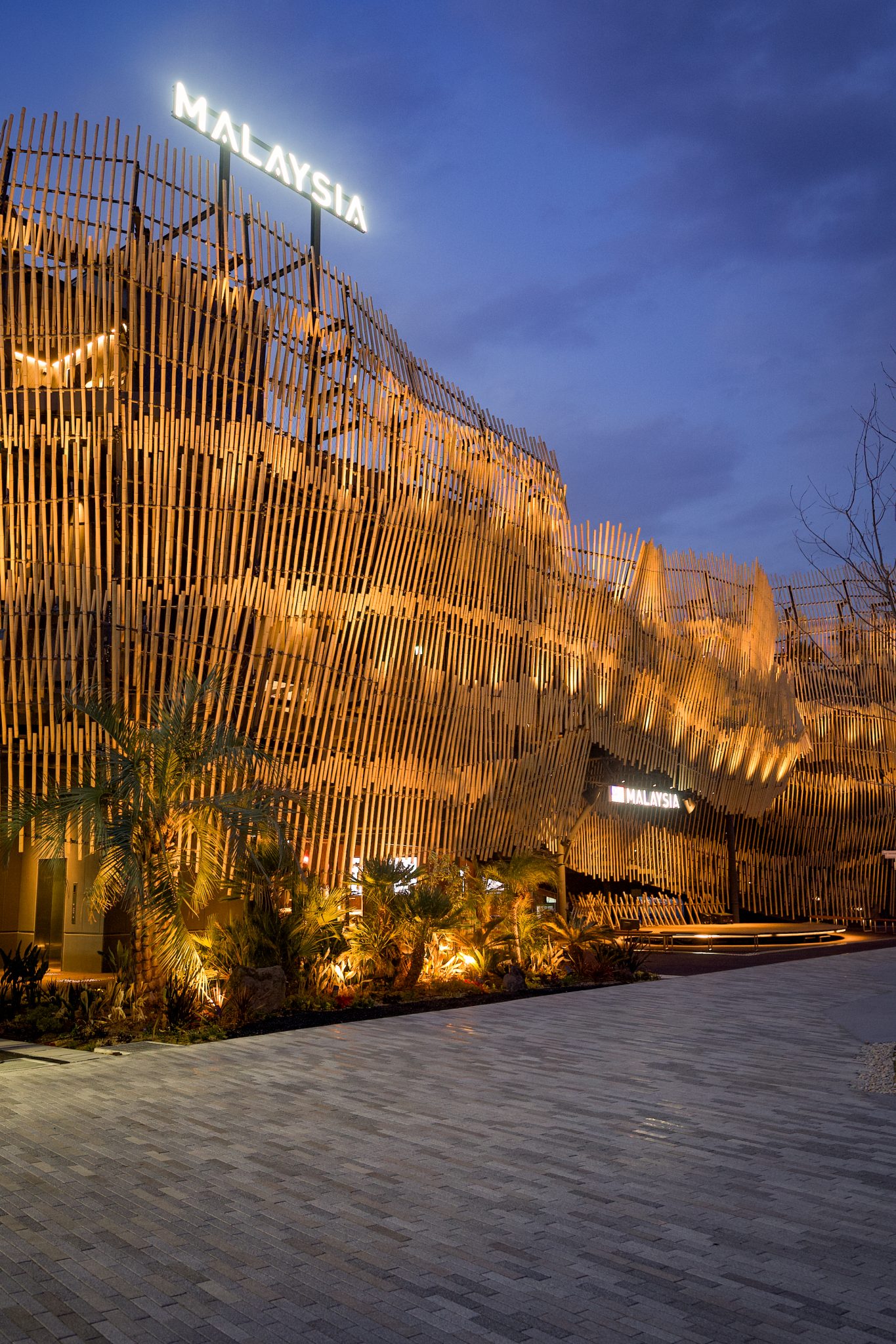 Based on the theme “Interwoven”, we expressed the landscape of Malaysia, where various ethnic, religious, social and cultural groups intersect. The use of bamboo was key, as it is a natural material with profound roots in both Malaysia and Japan.