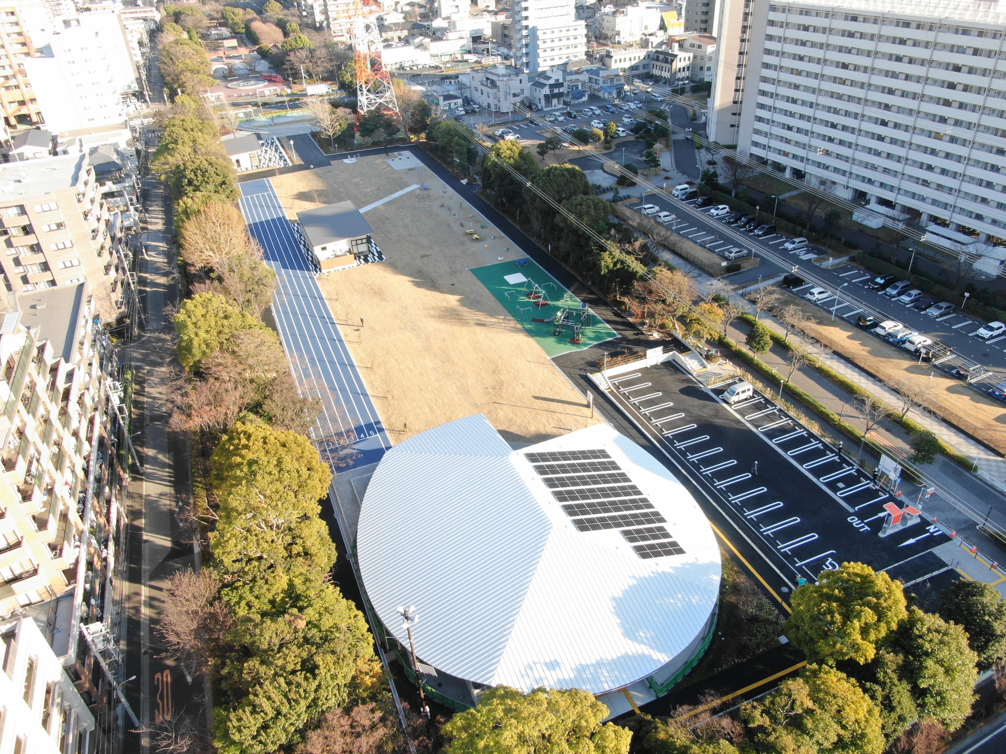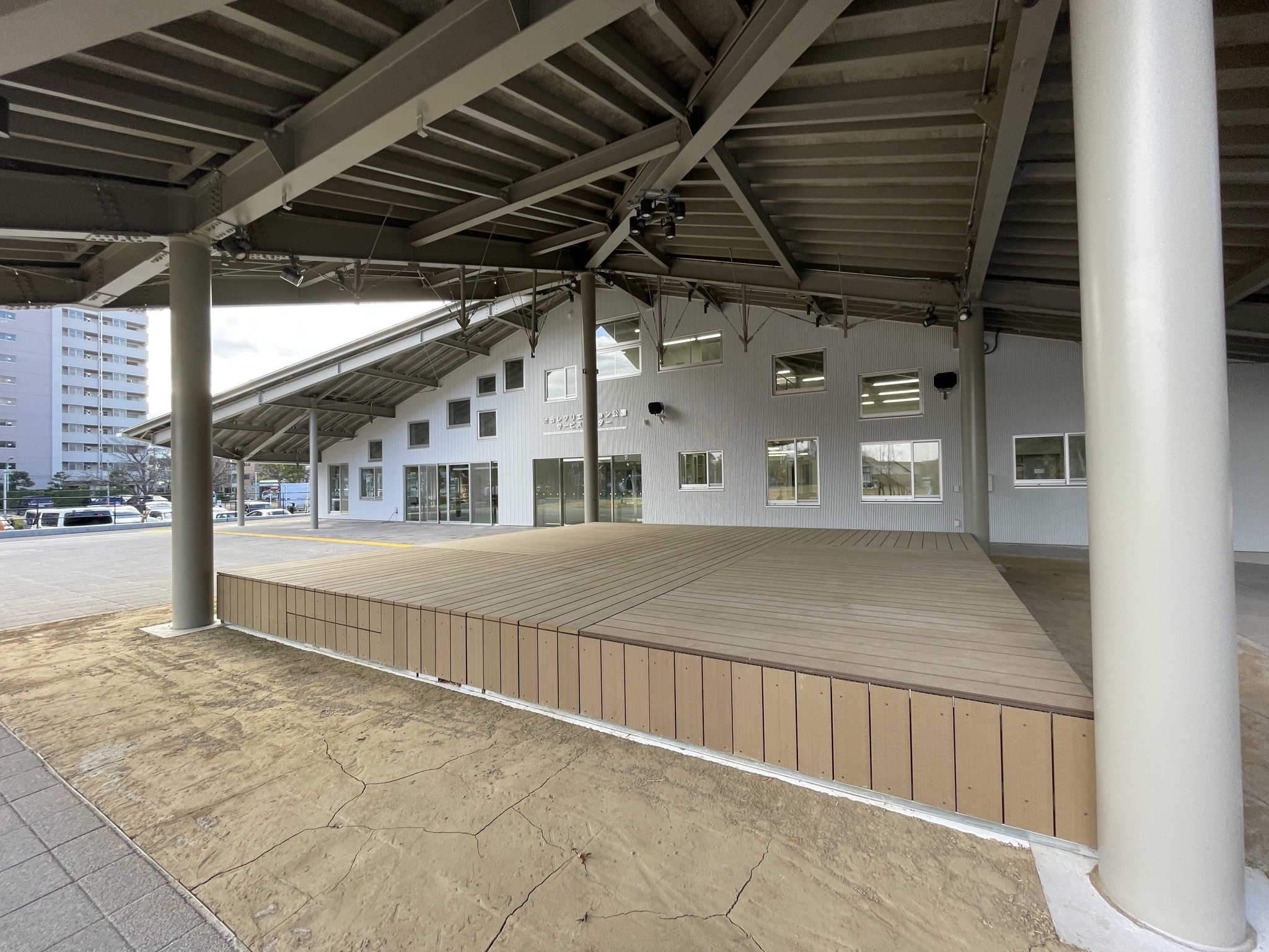 We designed an “indoor plaza” for play in sunny and in rainy weather in the Edogawa Sogo Recreation Park. This park is currently undergoing renewal through the Park-PFI/Park-Private Finance Initiative.