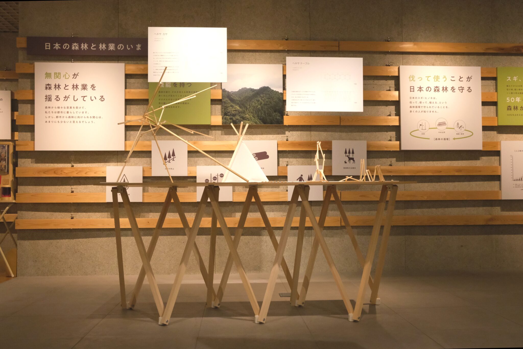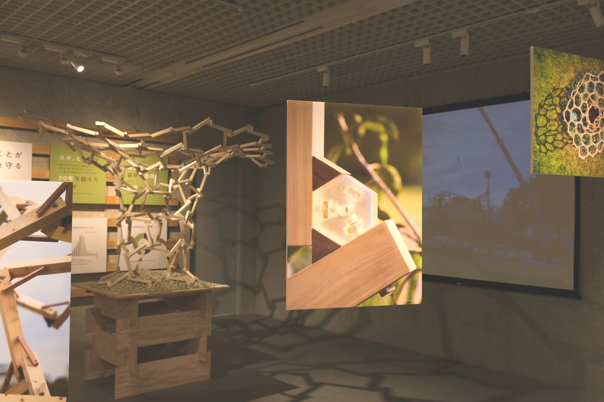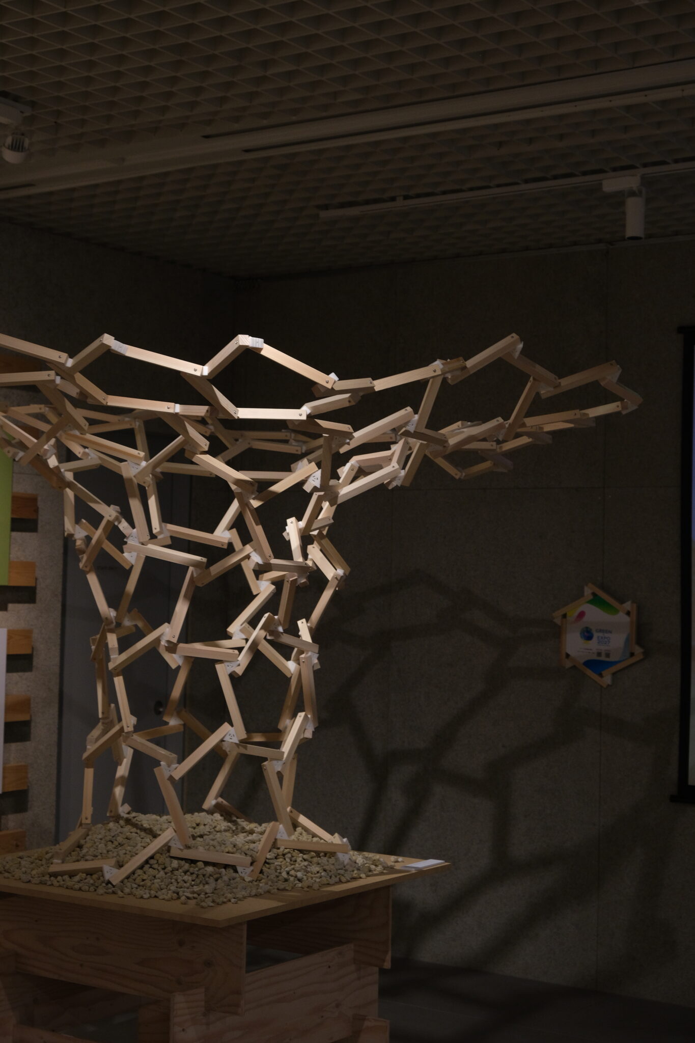 An exhibition of wooden monuments using a new joint system at MOCTION, the Tokyo Metropolitan Government’s PR facility for wood use.