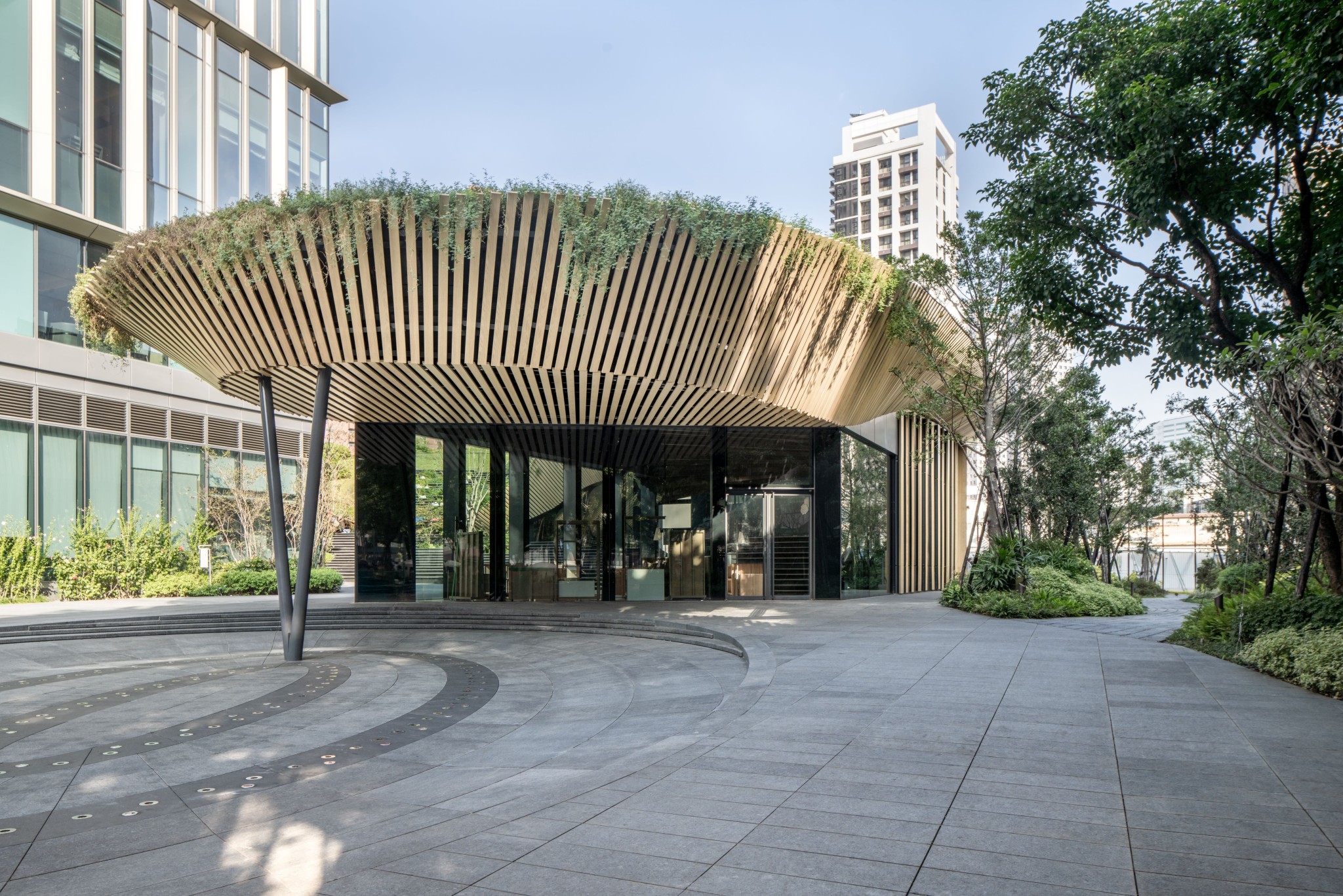 A garden-like museum was inserted at the foot of a high-rise building in Taichung.