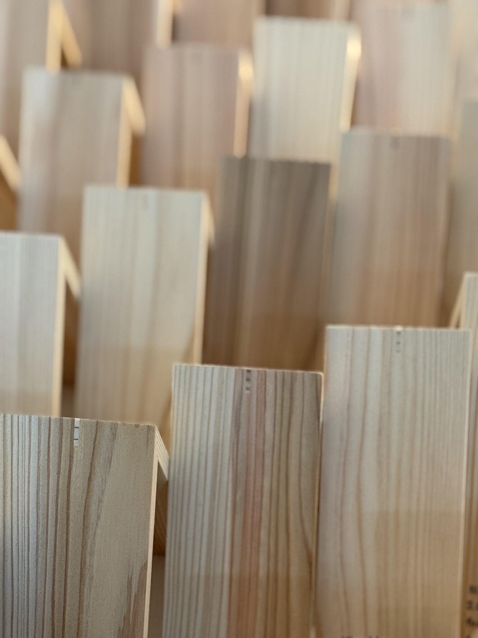 To convey this message, I designed these KIGUMI using thin planks of Japanese cedar, so delicate that they could easily break.