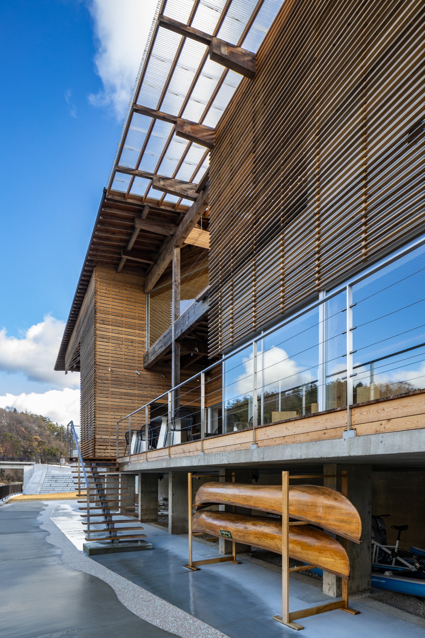 Tamakawa village took the lead in redeveloping ‘River/Filter’, one of KKAA’s most famous works from the 1990s, which was also the first building to use wooden louvers as a center for village activities on the riverside.