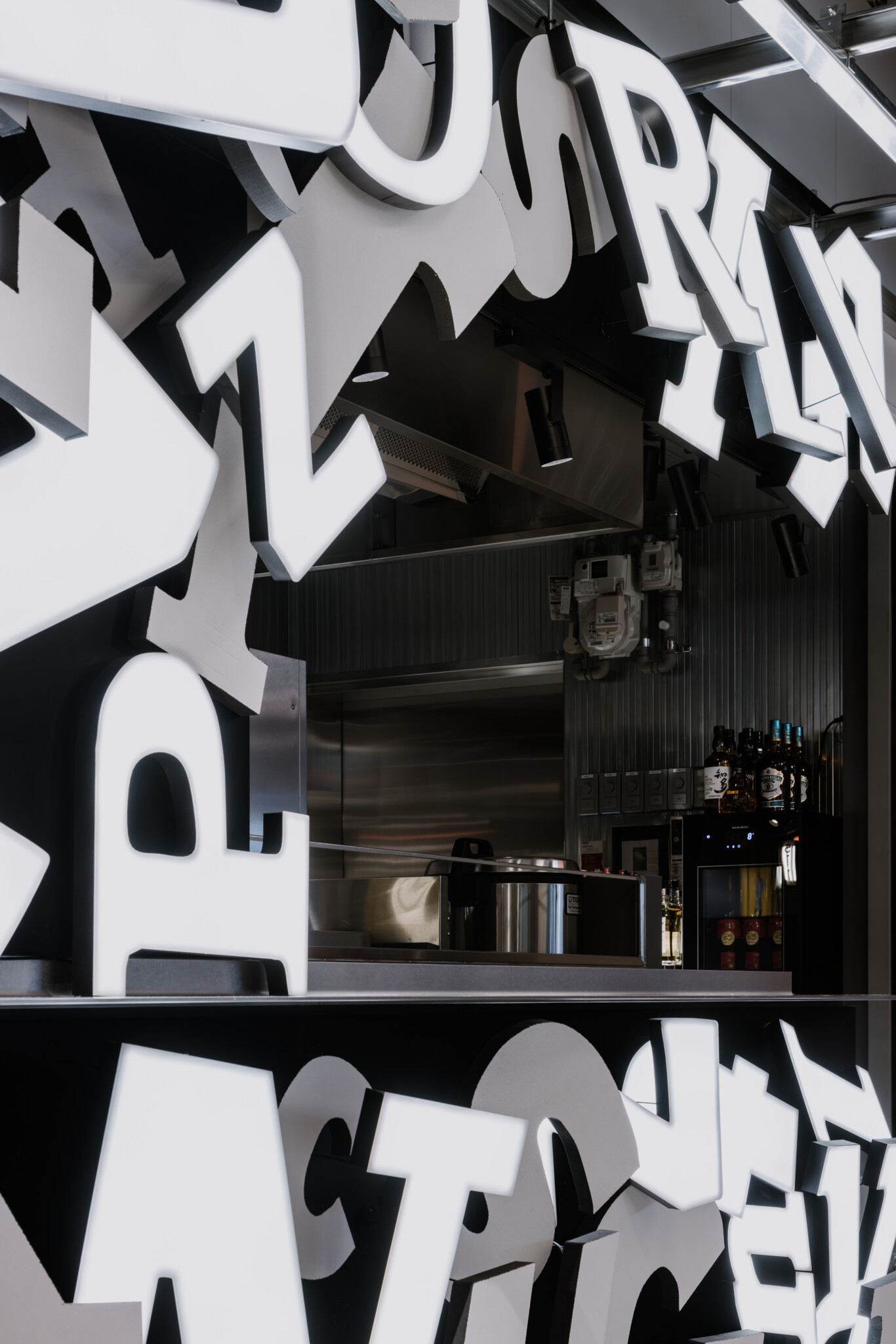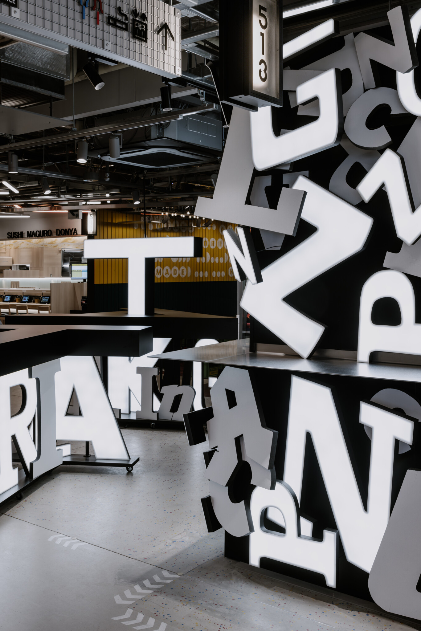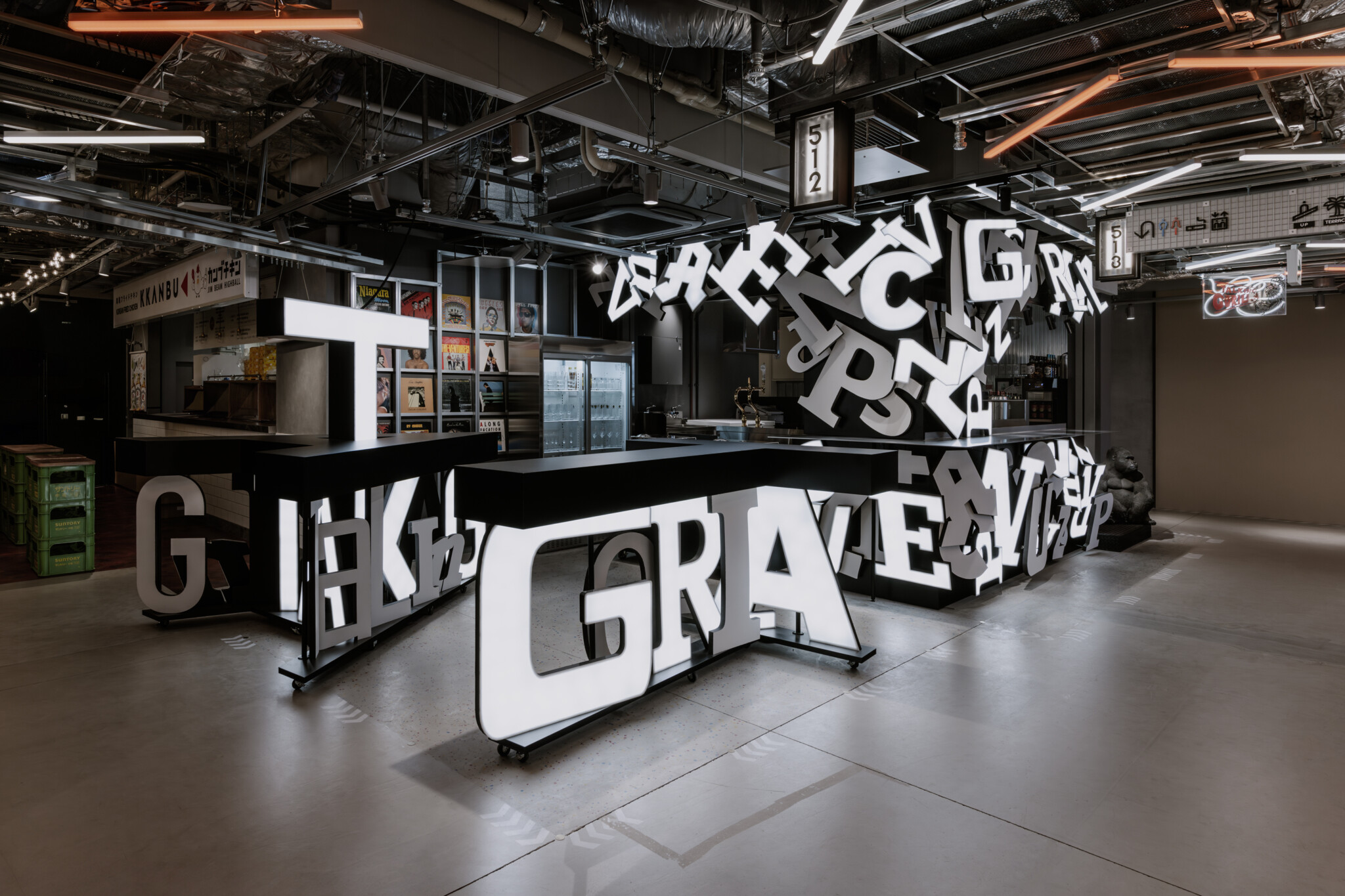 By scattering fragments of logotype signboards collected by Mr. Tezuka, we took the street-like spatiality of recycling “trash” that we have been pursuing in “Tecchan” one step further. This is an attempt to revive Harajuku’s original underground character to the latest Harajuku location.