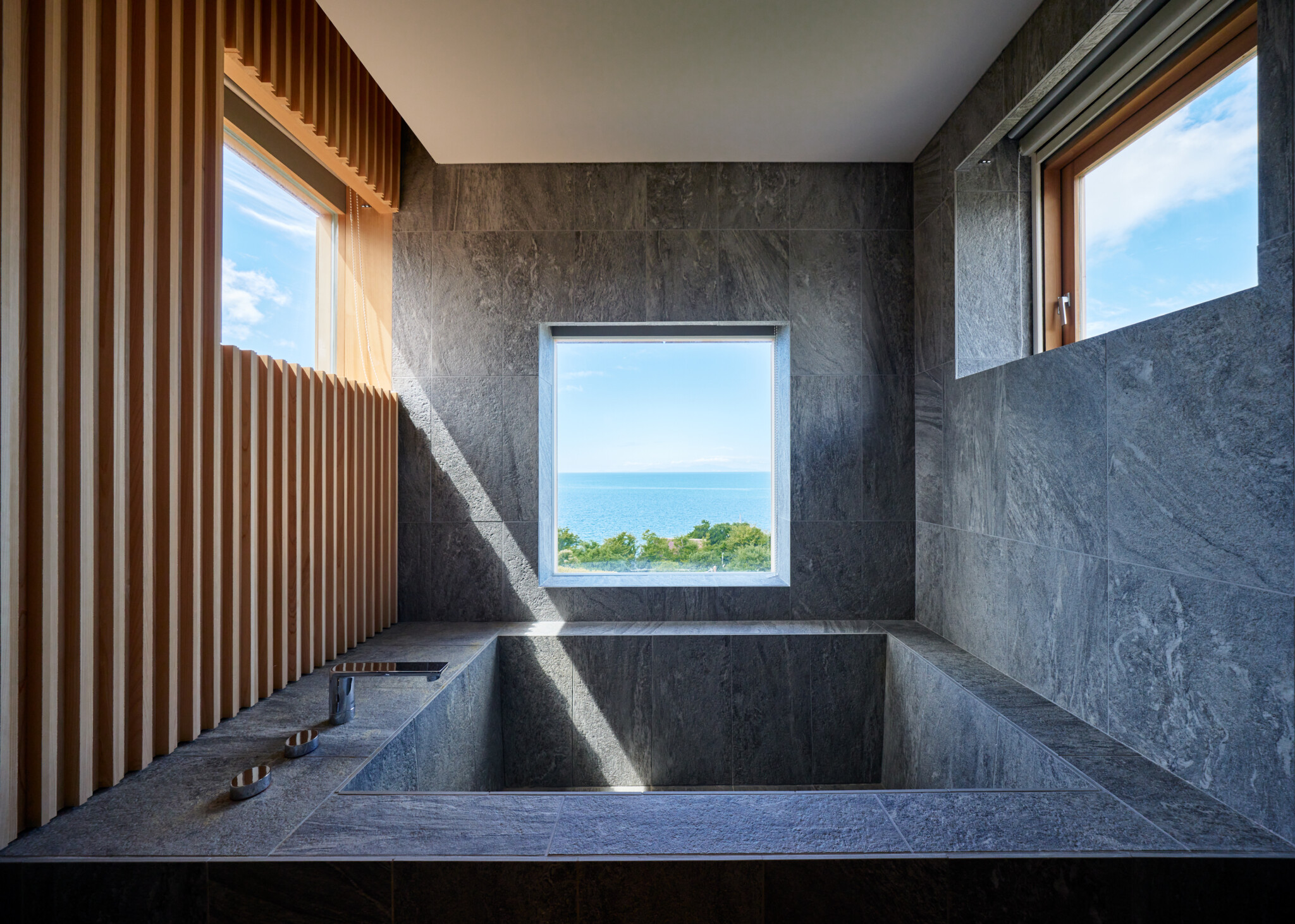 On a hill overlooking the Seto Inland Sea, we designed an experimental wooden hotel. The form was derived by manipulating the form of a stack of wooden boxes.