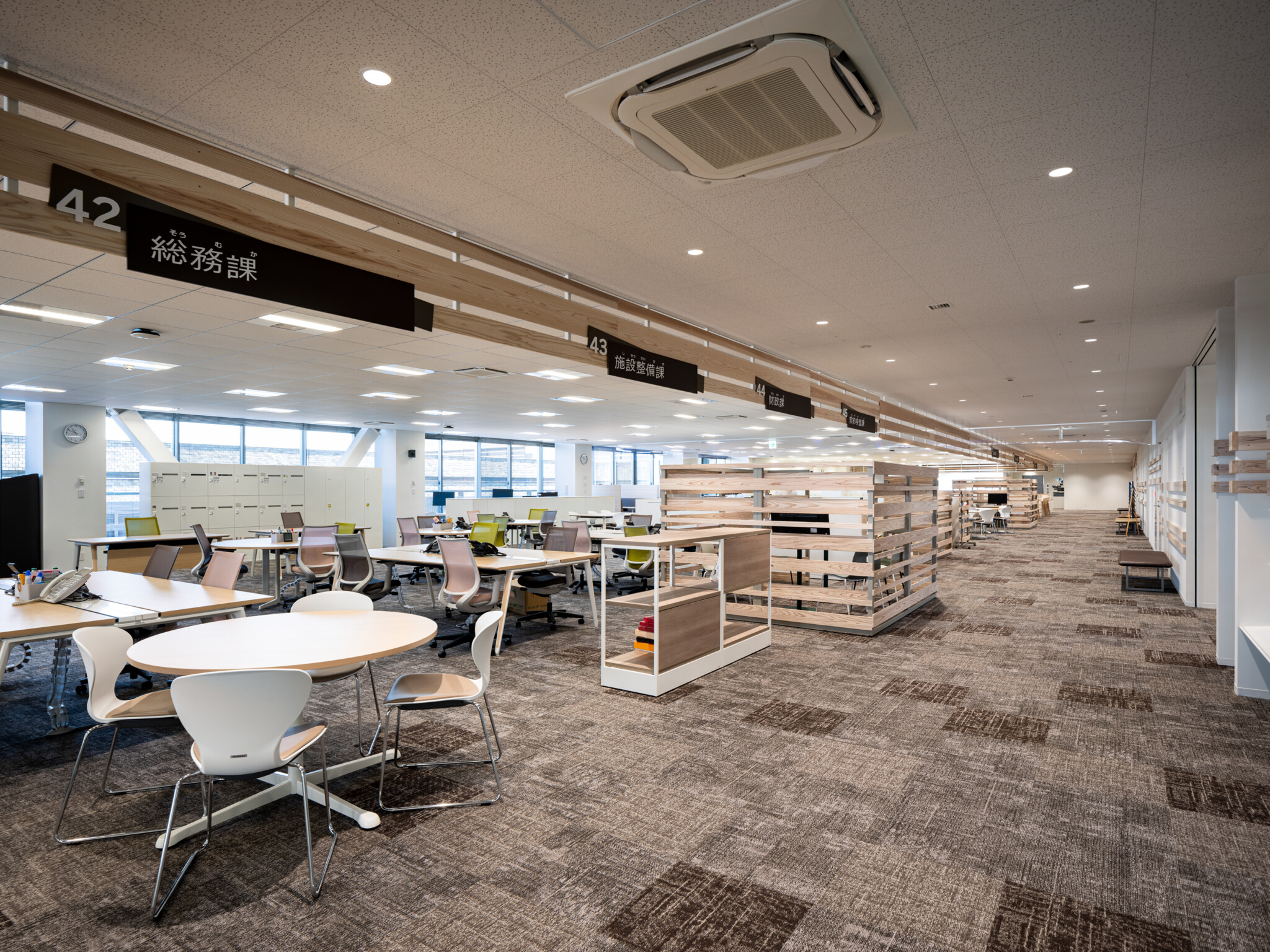 In Moriyama City, which once prospered as a post town along the Nakasendo Highway, we designed a government office building that is open and connected to the city like a former highway. The L-shaped lobby is placed in continuity with several roads leading to the government office building and is designed to avoid the existing government office building which is still in operation. Along the lobby there are large eaves, a plaza, café, a civic hall, and various reception desks to welcome citizens and provide a place for public activities. Walking around the lobby will exhibit a lively atmosphere where civic activities and administrative functions are integrated. Inside the building local timber is actively used and the eaves and balconies are wrapped with varying delicate wood louvers to create a warm and welcoming government building, fitting to Moriyama’s rich natural environment.