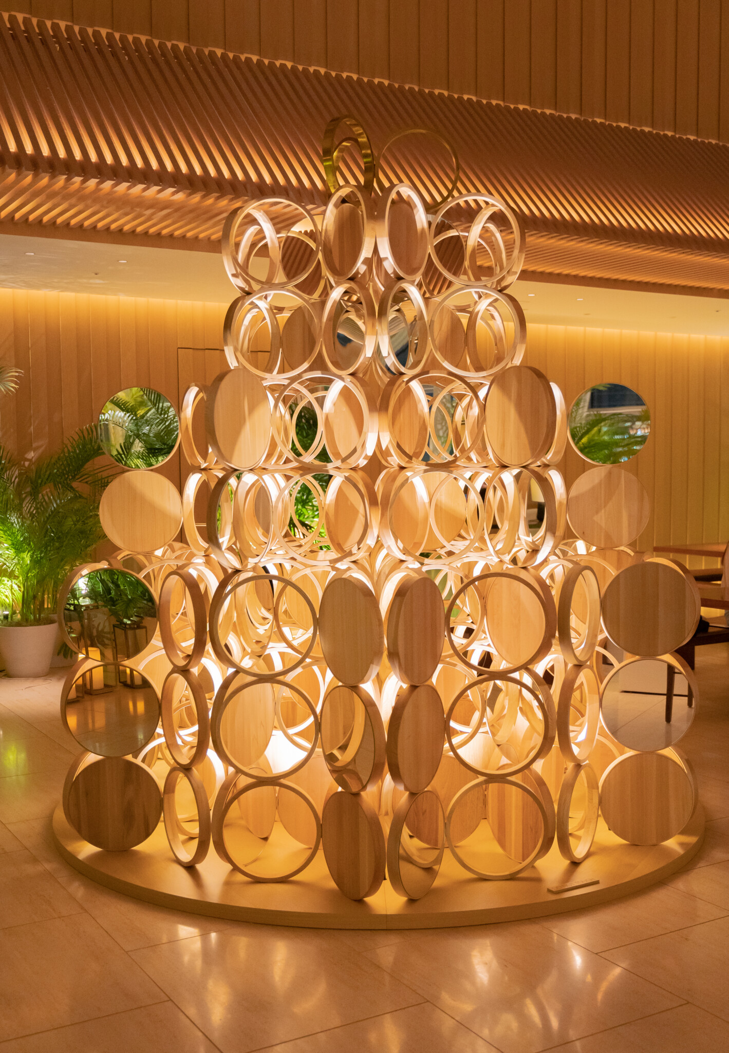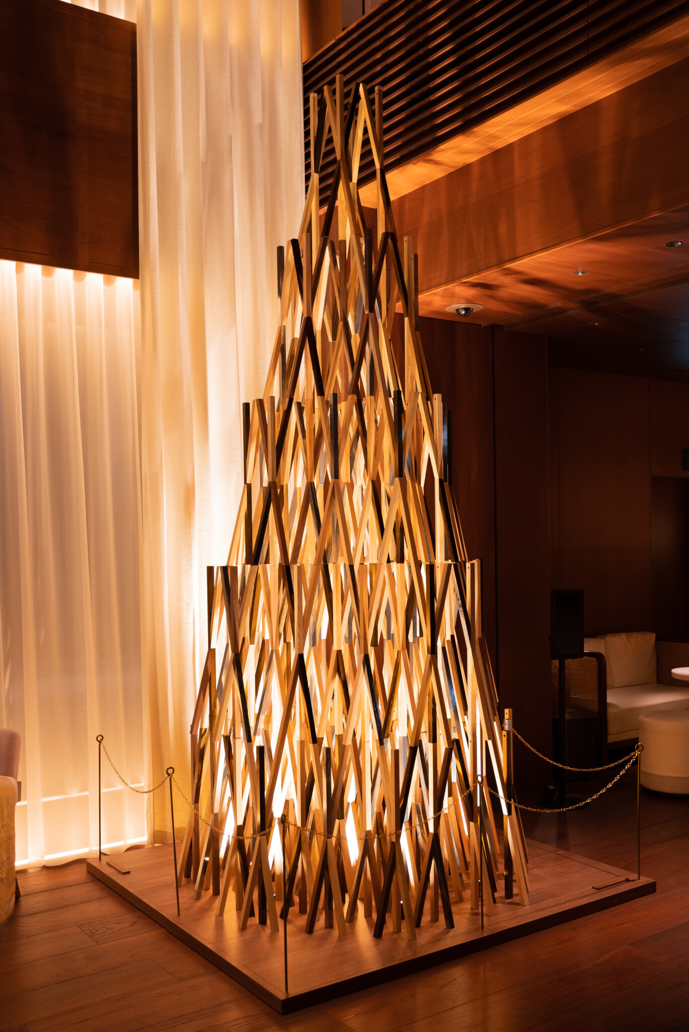 We designed a tree made of wood to add festive color to the Christmas season in the lobbies of The Tokyo Edition Toranomon, opened in 2020, and The Tokyo Edition Ginza, opened in 2023.