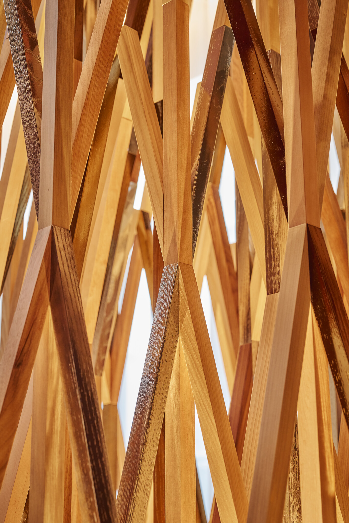 For both trees, multiple species of wood were used to contribute to the circulation and nurturing of forests. Additionally, after the Christmas season is over the tree units will be converted into furniture and reincarnated in different places. As such, we have aspired to create a sustainable Christmas tree that will live forever.